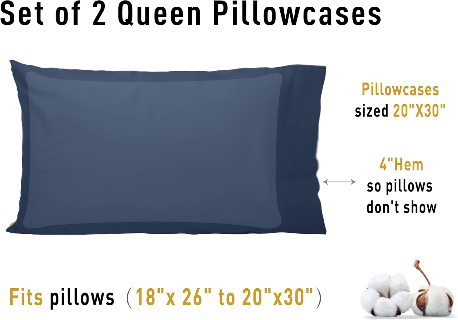 Excellent Craftsmanship: In a selection of solid shades, they let you update the look instantly. Variety in different colors to match your room decor and suitable for all seasons. Besides, the open type closure design makes washing more convenient. And the meticulous stitching ensures a longer lifespan for the cover. Our QUEEN pillowcases are 20" W x 30" L finished size.