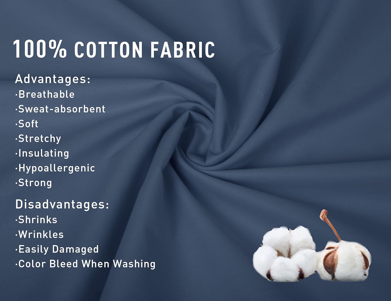 Warm Tips: High-temperature tumble drying will cause the cotton fabric to shrink and crisp, therefore, please tumble dry on low heat. Wash your light cotton items separately from dark cotton items. The cotton fabric will become softer with every wash.