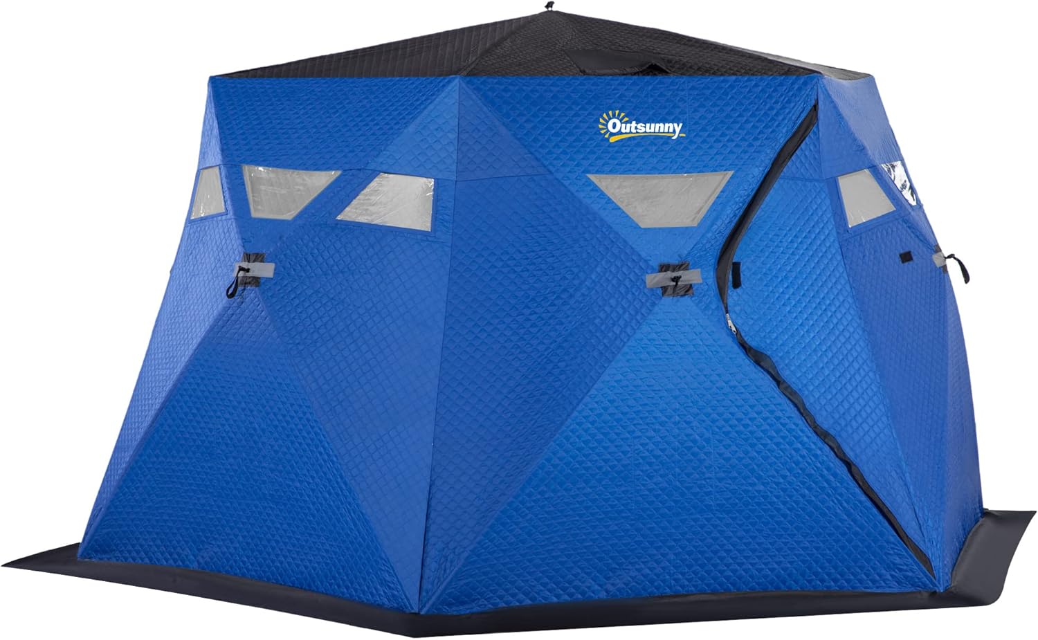 Outsunny 4 Person Insulated Ice Fishing Shelter, 360-Degree View, Pop-Up Portable Ice Fishing Tent with Carry Bag, Two Doors and Anchors for Low-Temp -22℉