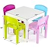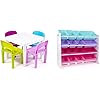 Humble Crew White Table/Pastel Chairs Kids Plastic 4 SetThe Tot Tutors Kids Plastic Table and 4 Chairs Set will liven up any room or covered patio. It is the perfect size for toddlers to eat, read books, color, do arts and crafts, play board games, and just have fun. This piece of furniture is easy to assemble with snap-together components. The sturdy table and chairs are great for boys and girls ages 3 years and up. The molded construction on this plastic table and chair set is durable. The height of this furniture is just right for toddlers and preschool-aged children, and the bright and bold colors work well with kid-friendly decor. Giving your little one a table and chair set at their size gives them a sense of control and helps them learn independence. This kids table and chairs set comes in multiple bright and bold color options to complement the existing furniture in your home as well as the toy storage organizer products in Tot Tutors' line of kids furniture. Color options include Vibrant: yellow table with vibrant chairs (green, blue, orange, purple); Primary: blue table with primary chairs (red, green, blue, yellow) and Bright: white table with bright chairs (pink, green, aqua, magenta). Product sizing - Table: 20""W x 20""D x 17""H Chairs: 12""W x 11""D x 18""H Seat height: 10""H Tot Tutors offers a full line of children's furniture, organizational basics, and storage solutions. We have multiple room collections that fit the style of any home. Our children's table and chairs, toy storage organizers, toy boxes, bookcases, beds, and upholstered chairs blend with all of your home's furniture. Whether it's the living room, playroom, or your child's bedroom, Tot Tutors has just the right product to help your family grow.Humble Crew, White/Blue/Pink/Purple Extra-Large Toy Organizer, 16 Storage BinsPlaytime is more fun when your kids can easily take out their toys, books and games and then quickly clean up afterwards. The space-saving Humble Crew Super Sized Toy Storage Organizer with 16 Storage Bins stows your children's toys in easy-to-see, easy-to-access BPA and phthalate free plastic storage bins. Stylish colorways make it ideal for organizing your child’s nursery, bedroom, playroom, closet, even the living room....the options are endless! The 12 standard and 4 large storage containers are easy to remove, replace and reposition along the 4 tiered shelves—sized just right within the toy organizer for toddlers and preschool-aged children. It makes a great toy box storage alternative, helping keep your little one’s room clean and organized while at the same time teaching sorting and cognitive skills. Made with a sturdy engineered wood construction frame and steel shelving rods, each level can hold up to 20 pounds. Some assembly is required and all hardware is included. Product sizing - 42"W x 11"D (16"D with stabilizing braces) x 32" H Standard bin sizing: 12" L x 9"W x 6" H Large bin sizing: 16"L x 12"W x 6"H Additional plastic storage toy bins are sold separately.