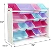 Humble Crew White Table/Pastel Chairs Kids Plastic 4 Set & White/Blue/Pink/Purple Extra-Large Toy Organizer, 16 Storage Bins