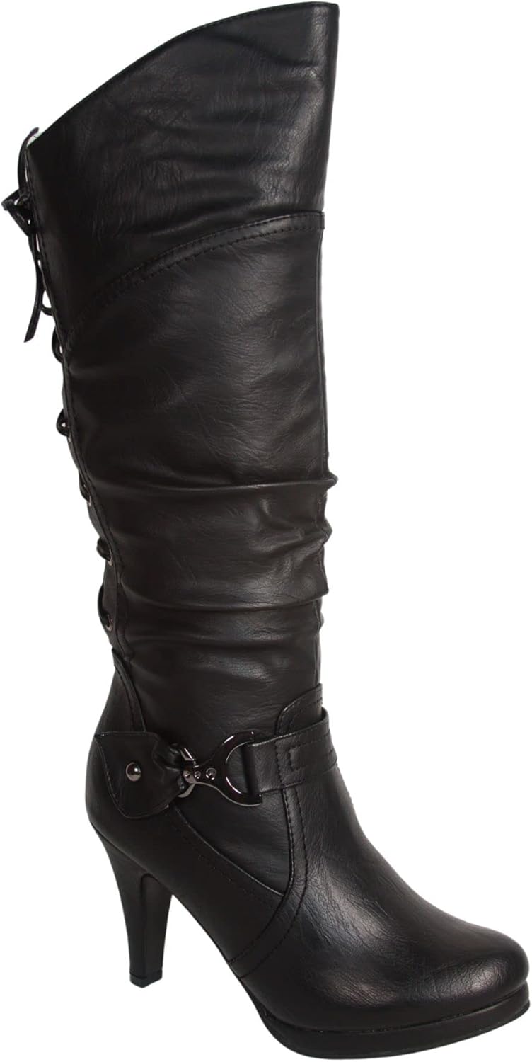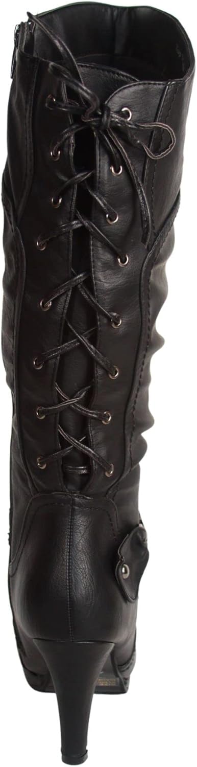 TOP Moda Womens Page-65 Knee High Round Toe Lace-Up Slouched High Heel Boots