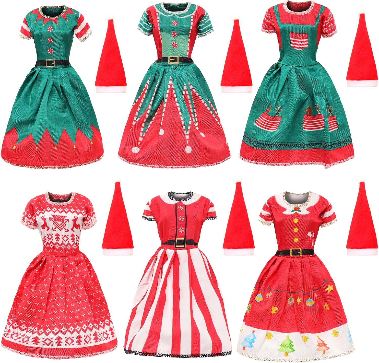 What in the Parcel: 5pcs 11.5 inch girl doll Christmas dresses with 5pcs Christmas hats.