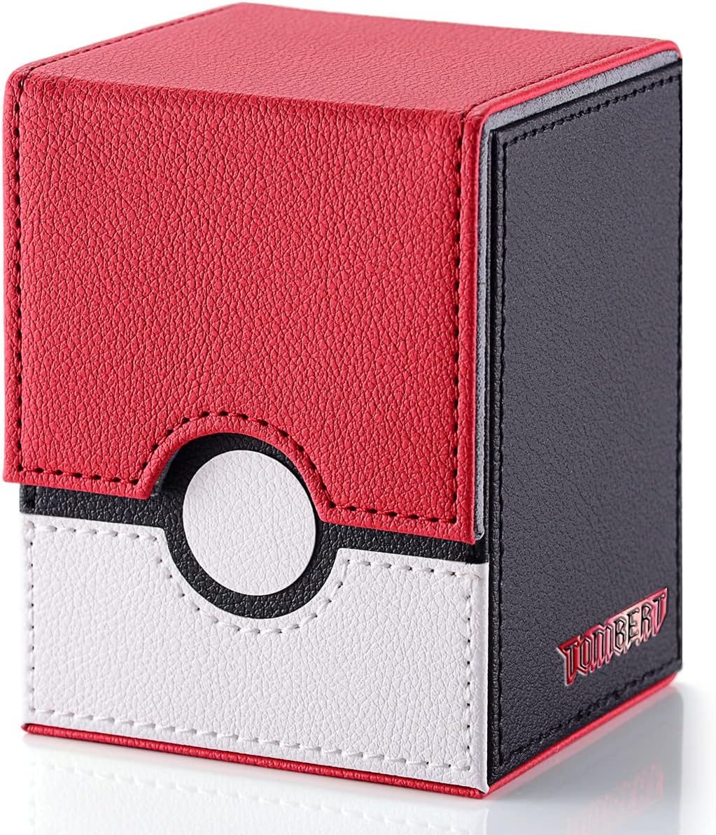 tombert 150+ Premium Deck Box Case for PTCG, MTG, Large Capacity with 2 Dividers, Fits 100+ Sleeved Cards TCG Trading Card Games(Vertical - Red & White)