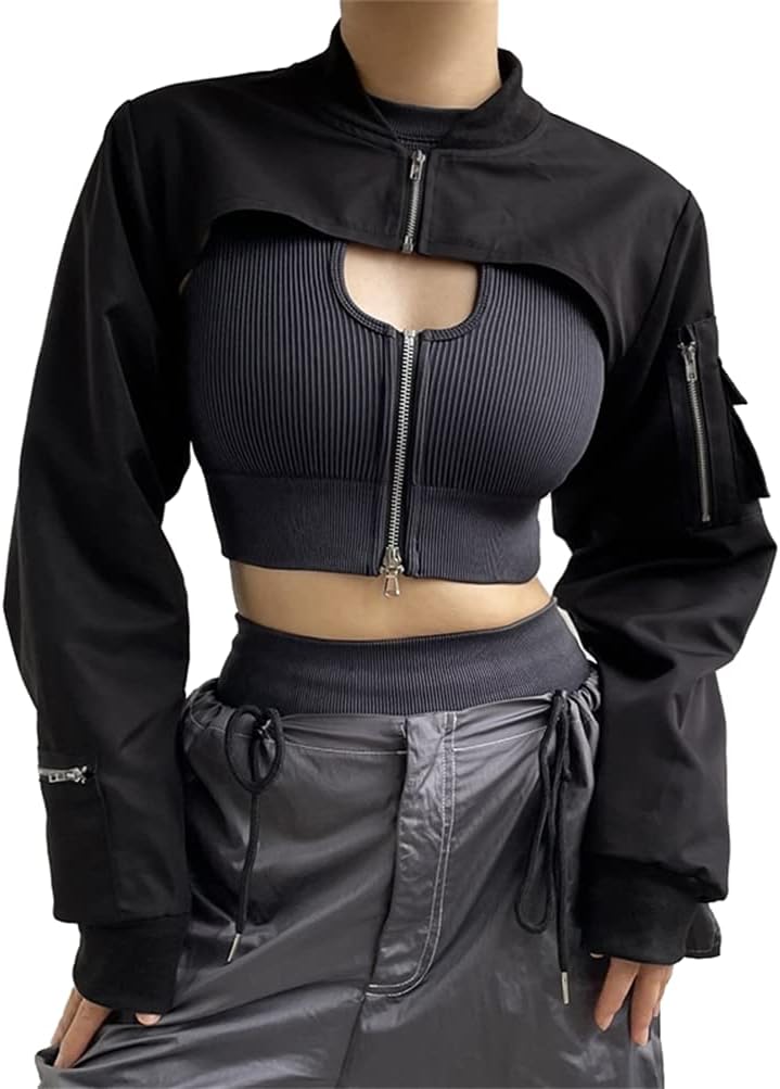 Emo Crop Top Alt Rave Crop Coat Long Sleeve
