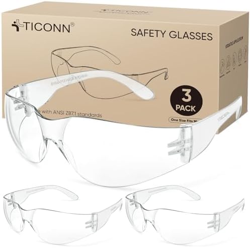 TICONN Clear Safety Glasses for Men, Safety Goggles with Scratch Impact Resistant Meets ANSI Z87.1 Standard