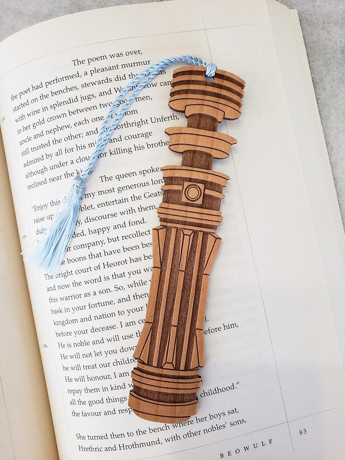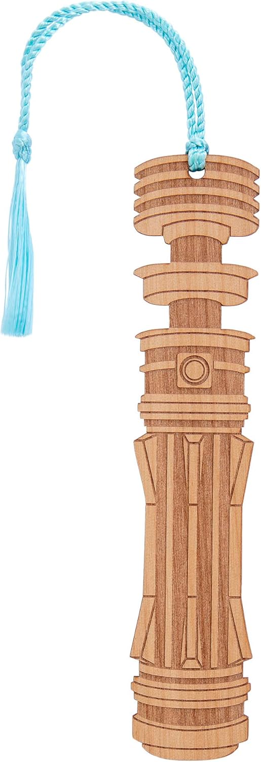 Star Wars Princess Leia Skywalker Lightsaber Bookmark - Laser Engraved - Made in The USA - Wood Book Mark with Aqua Blue Tassel