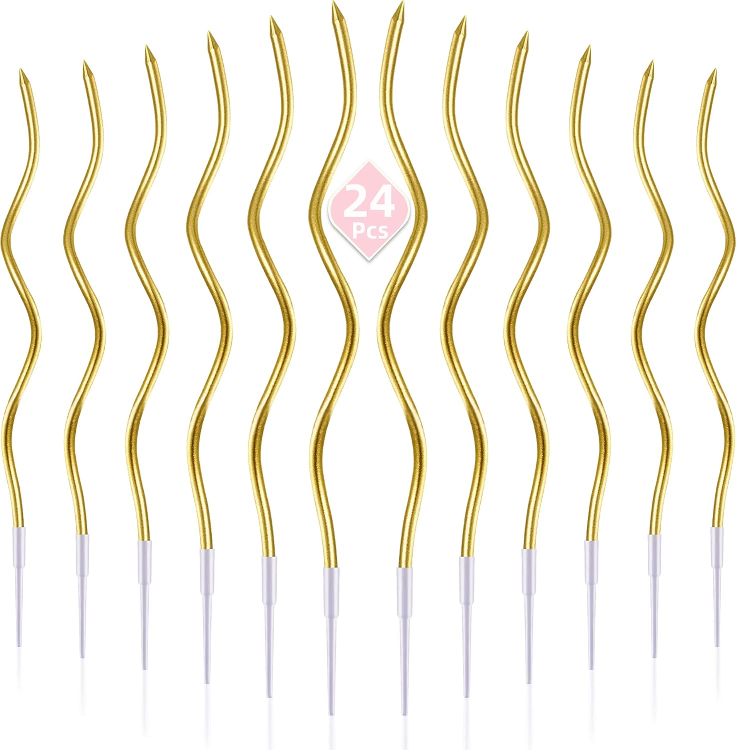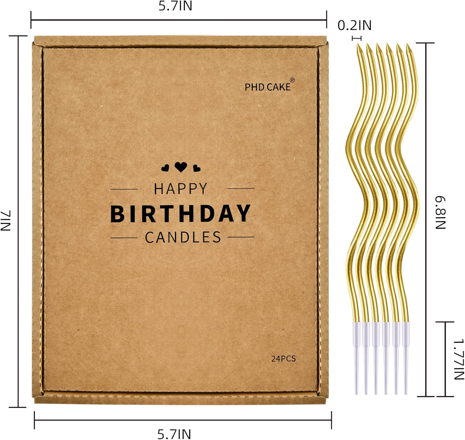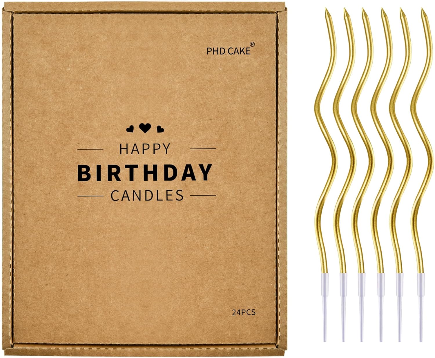 PHD CAKE 24-Count Gold Spiral Long Thin Metallic Birthday Candles, Cake Candles, Birthday Parties, Wedding Decorations, Party Candles