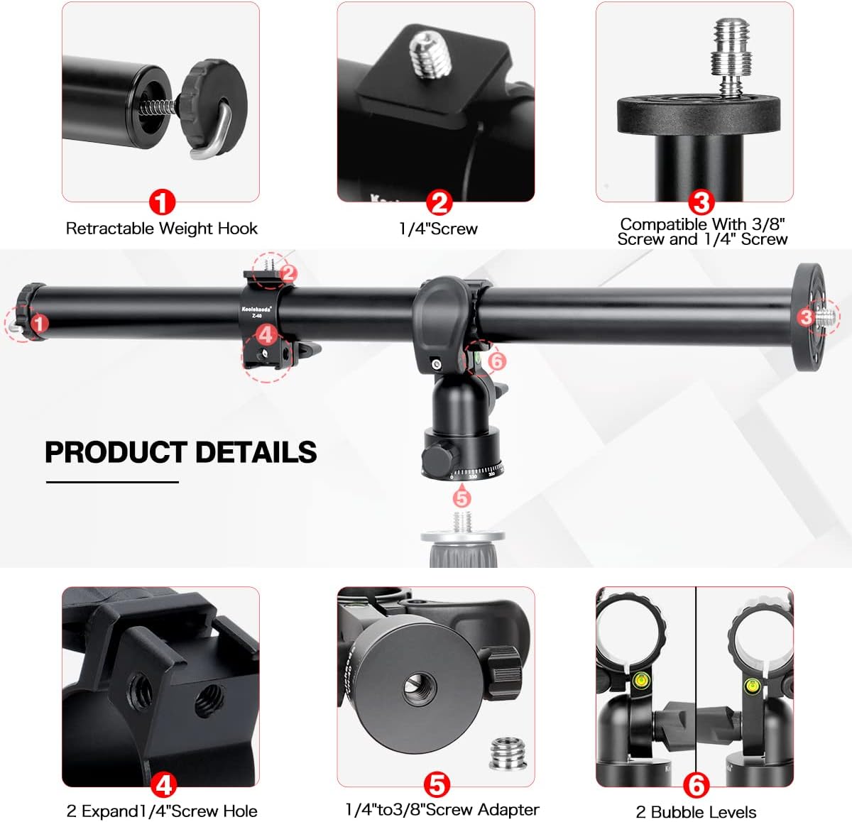 Koolehaoda 16.5" Tripod Extension Arm Horizontal Centre Column Extension Boom 28mm Tube with 360° Rotatable Rotating Base for Overhead Photography, Macro Shooting, Load up to 22lbs