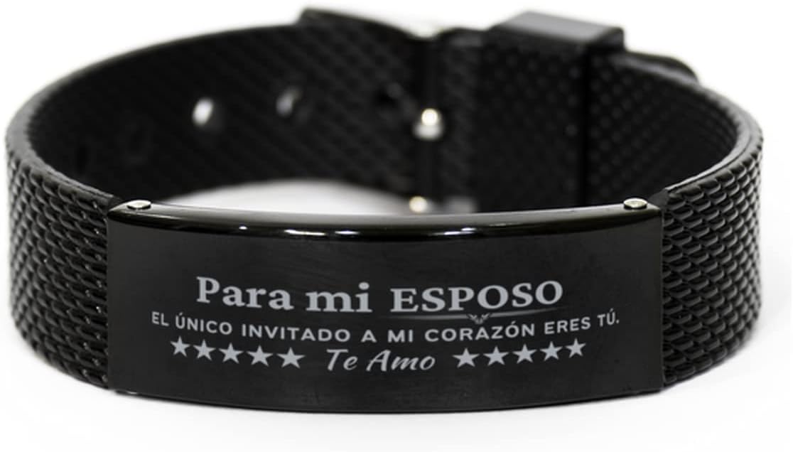 Significativo brazalete de acero inoxidable grabado en negro para tu pulseras para hombres. Brazaletes para el dia del padre, navidad o cumple, pulseras para dia del papa. Este es un regalo especial para tu pulseras para hombres, que puede llevarlo a donde quiera que vayan. Esta hermosa pulsera con mensaje grabado es perfecta para esposos, maridos o novios. Durable y moderno, esto lo convierte en el complemento de moda perfecto.