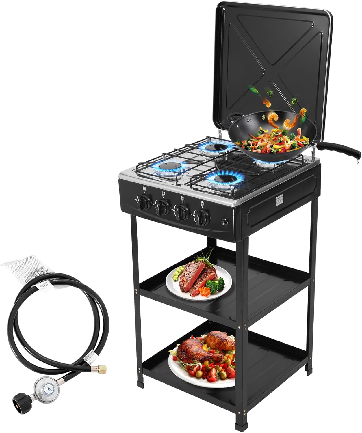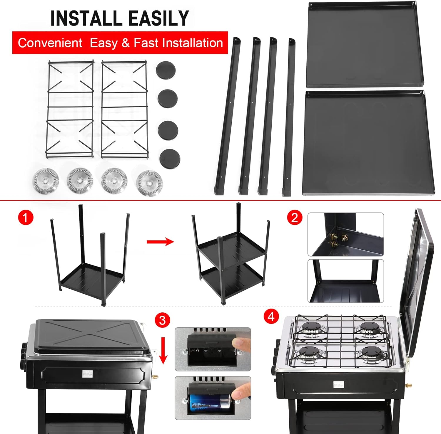 forimo Propane Gas Stove 4 Burner Propane Burner with Support Leg Stand and Wind Blocking Cover Adapter Portable Gas Stove Auto Ignition Camping Stove 4 Burner LPG for RV, Apartment, Outdoor Cooking