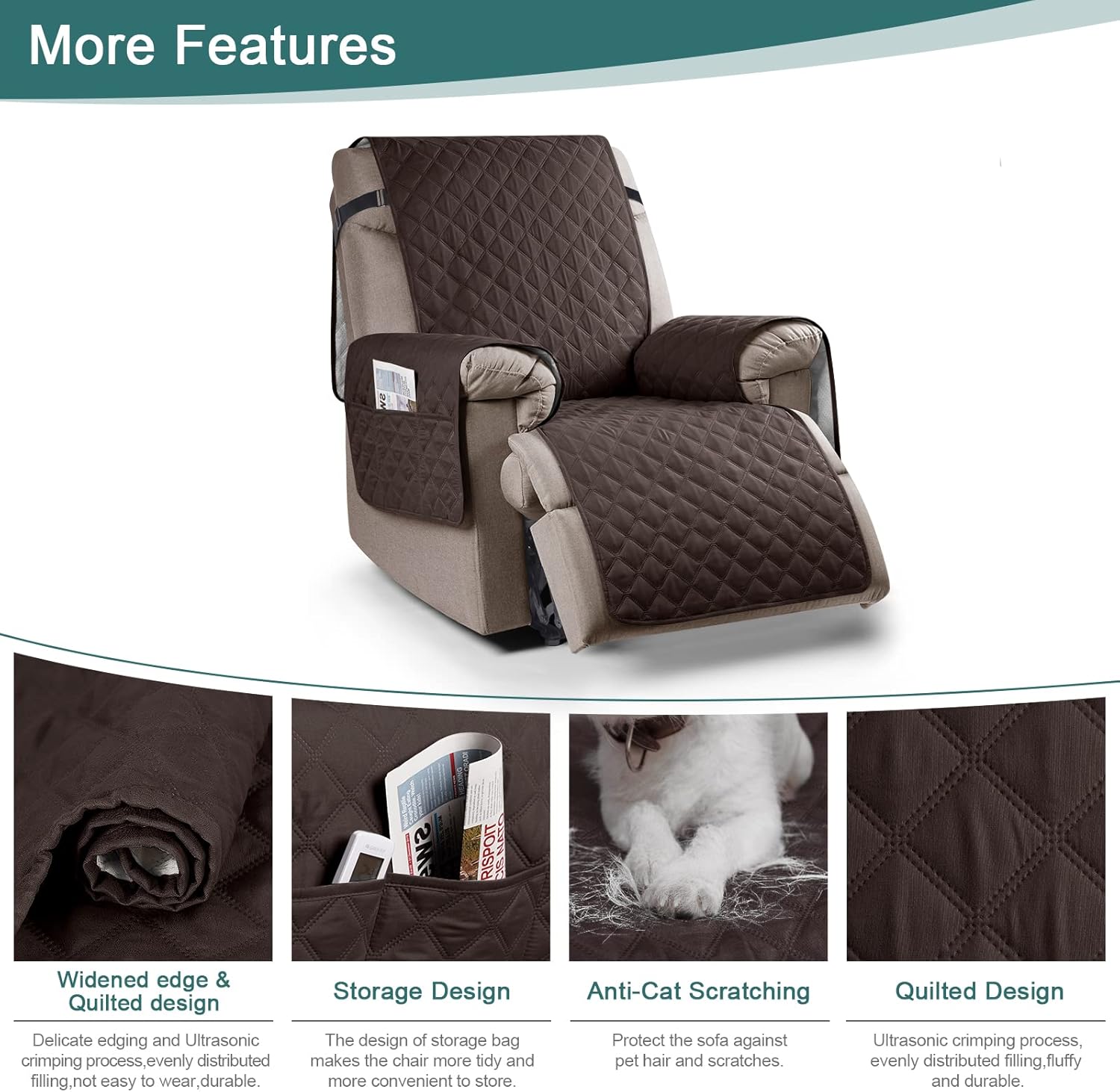 UTILITY POCKETS: There are utility pockets on the side of our reclnier chair cover, you can put remote , mobile phone, magazines and other items in it. Making your chair more tidy and more convenient to store