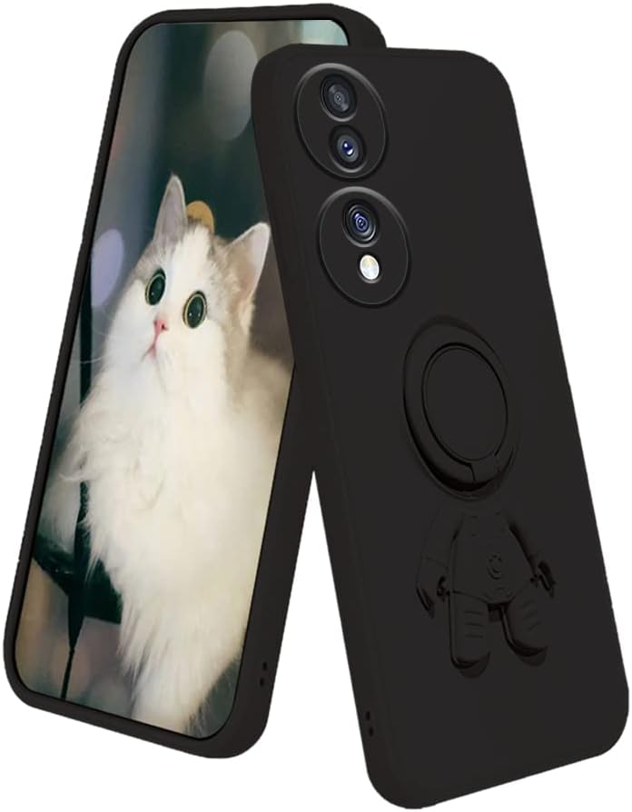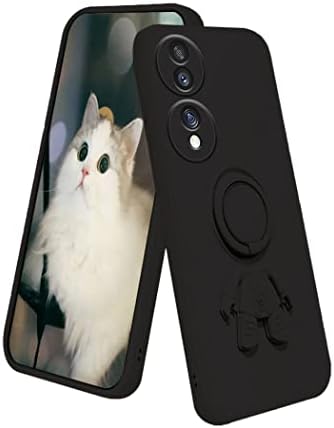 Compatible with Honor 70 Case with Ring Kickstand Astronaut Pattern 360°Rotatable Green,for Honor 70 Phone Case Silicone Liquid with Soft Microfiber Lining Slim Shockproof Protective Cover (Black)