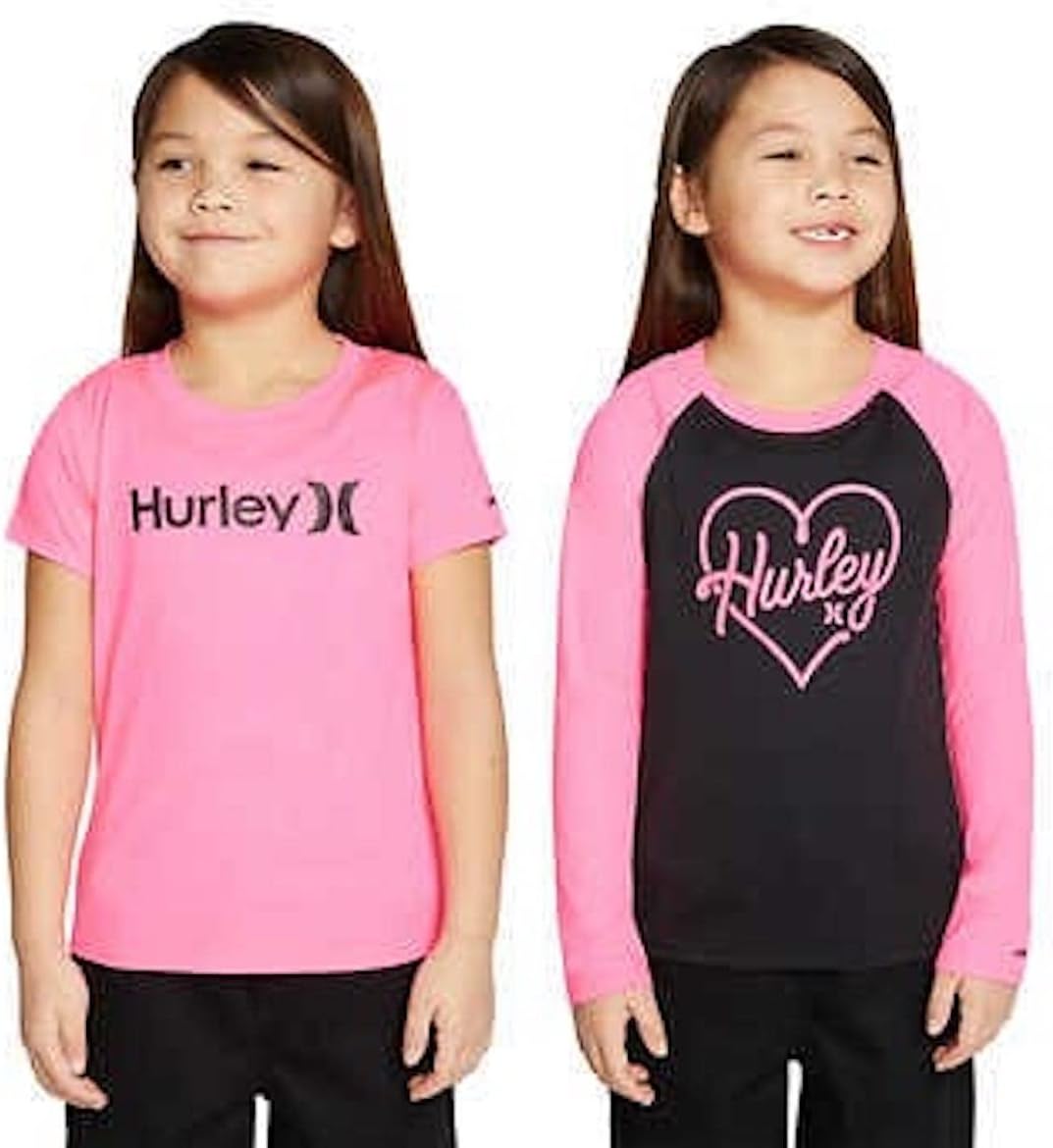 Hurley Youth Girl's 2 Pack UPF 50+ Sun Protection Tees (as1, Alpha, l, Regular, Pink, Large(14/16))