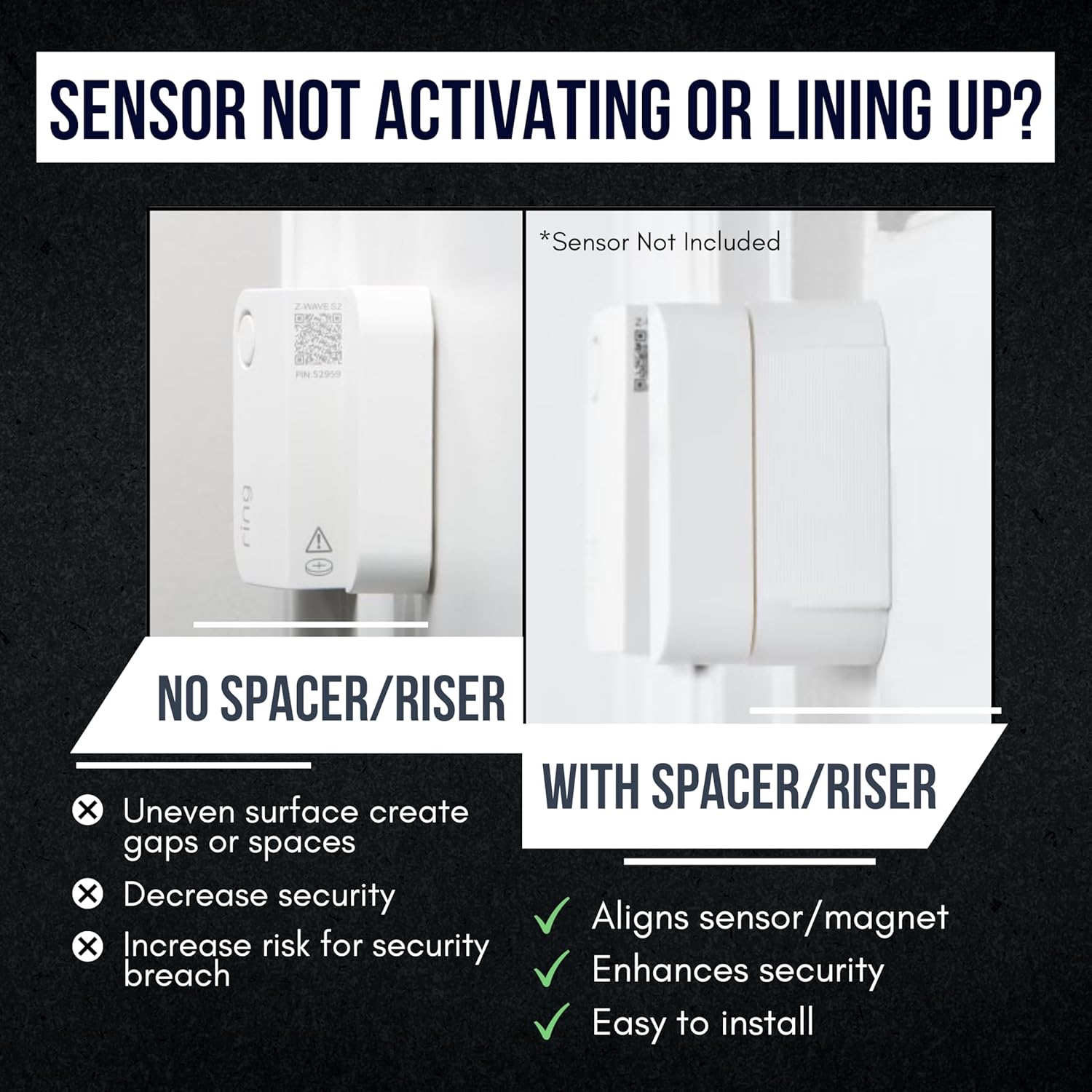 Actualización de Seguridad del Hogar DIY: Con este elevador de sensor de contacto, ajuste con facilidad la ubicación de sus sensores de contacto Ring. Compatible con el sensor de contacto de alarma Ring de 2ª generación, es una actualización ideal para su paquete de 2 sensores de puerta Ring o cualquier sensor para la seguridad del hogar.