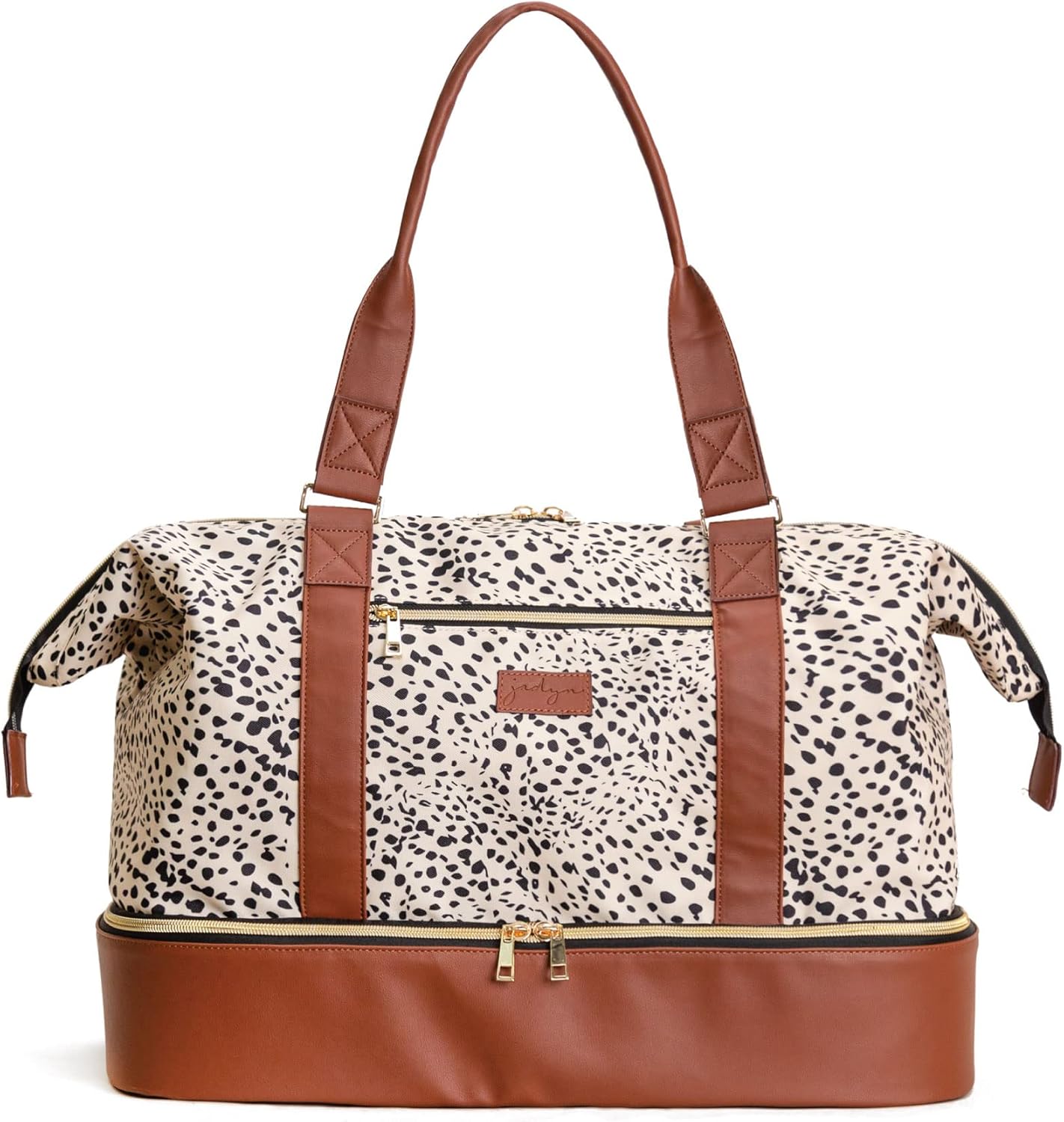 Jadyn Florence Structured Duffle Bag, Weekender Bag for Women, Carry-on Bag for Overnight and Weekend Travel, Large 45 Liter Capacity with Tote Handles (Cheetah Spot)