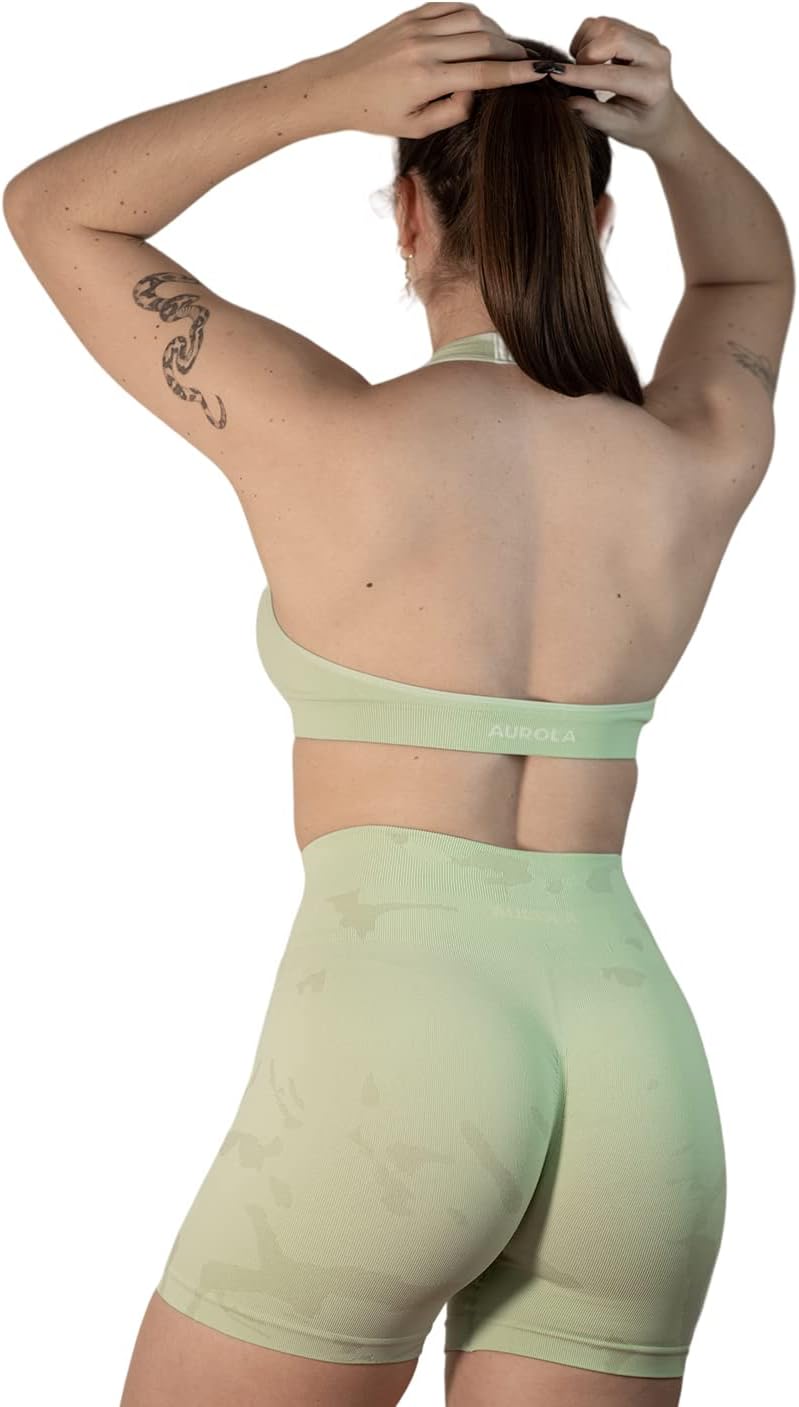AUROLA Moon Seamless Halter Backless Sport Bra for Women Adjustable Padded Active Workout Gym Yoga Crop Tank Top