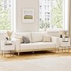 Masupu Nightstand,Mid-Century Modern Bedside Table with Storage Drawer and Open Wood Shelf,Small Gold Frame Side Table for Bedroom,Living Room,White