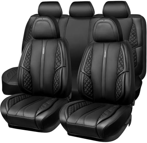 CAR PASS Nappa PU Leather Car Seat Covers Full Set Waterproof Protector Durable Cushioned,Universal Fit for Sedan SUV Pick-up Truck,Automotive, Anti-Slip and Backseat Luxury Premium Deluxe(Black)