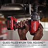 The V20* Brushless RP 1/2" Drive High Torque Impact Wrench comes with a powerful brushless motor that provides the power necessary for a wide range of fastening applications with 700 ft-lbs of fastening torque and 1000 ft-lbs of breakaway torque. The three-speed transmission and variable speed trigger gives the user the necessary control for multiple applications. It also features a hog ring anvil to help ease switching different socket sizes. The glass filled nylon housing provides extra protection in an automotive friendly environment. Finally, an LED light helps improve visibility in those dark, hard to access, work areas.