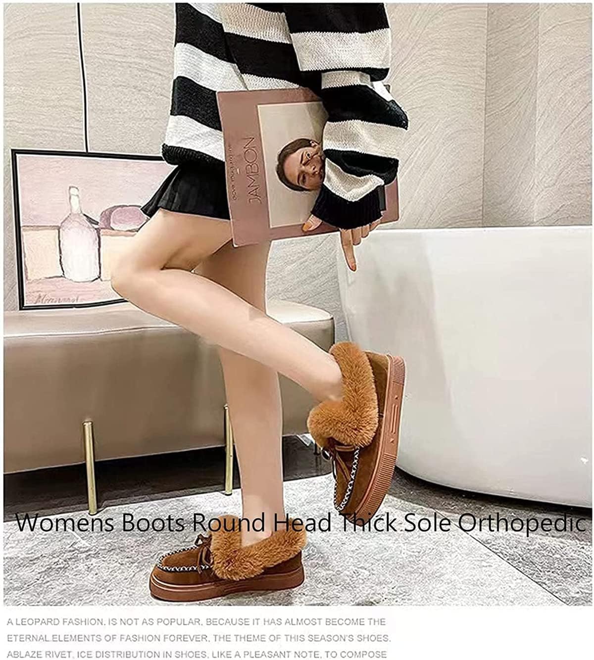 Feature: 1. Durable and soft artificial leather upper which can withstand years of wearing. 2. Control, Stabilize & Balance the Foot. Absorbs Shock & Reduces Friction to Improve Overall Foot Comfort. 3. It's Lightweight that will make you walk more steadily & stand for hours, without any strain or imbalance. 4. Moves angled toe back to the natural position while realigning the skeletal system for posture correction. 5. Improve posture - the feet are where bad posture begins. Help improve the mobility of your hips, back & knees by eliminating the pain caused by your feet. Upper Material: Synthetic Short Plush, Faux Leather Outsole Material: Rubber Heel Type: Flat Fastening: Slip On Toe Type: Round Toe Tube Height: Low Tube Sole Craft: Viscose Shoes Features: Anti Skid, Plush Liner, Low Cut, Thick Heel Season: Spring, Autumn, Winter Pattern Type: Striped Printed, Drawstring, Elastic, Breathable Color: Black, Gray, Brown, Pink, White, Beige, Purple, Wine Red, Leopard print Package Includes: 1 pair * womens boots round head thick sole orthopedic Notice: 1.Actual color may be slightly different from the image due to different monitor and light effect. 2.Please allow 1-3cm deviation due to manual measurement. 3.Thanks for your understanding. Have a nice day!