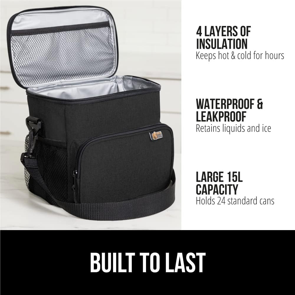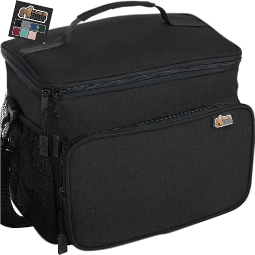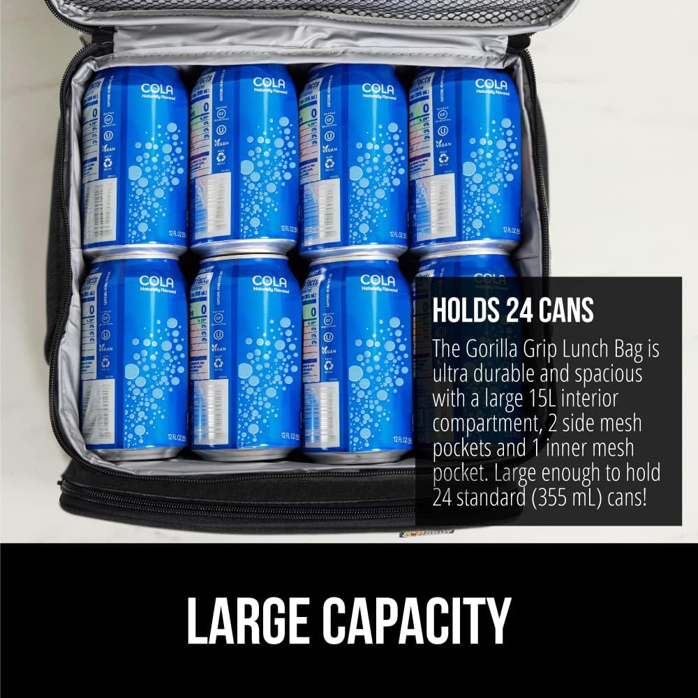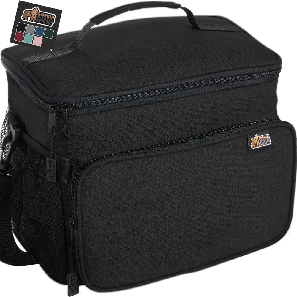 GORILLA GRIP Reusable Insulated Lunch Box Bag for Women Men,15L, Leakproof XL Soft Cooler Bags, Multiple Compartments, Mesh Pockets and Adjustable Strap, Food Tote Keeps Drinks Cold, 13x9, Black