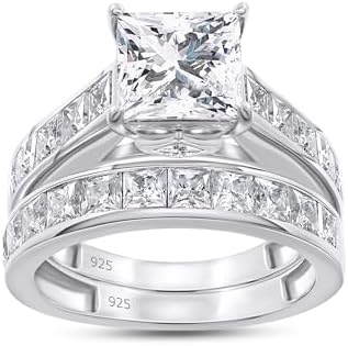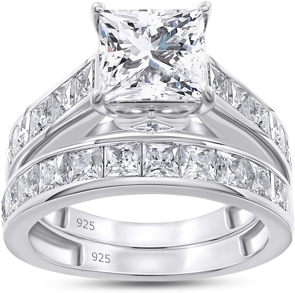 7MM Center Princess Cut Bridal Set Ring 3 Cttw And 4 Cttw In Lab Created Moissanite Engagement Wedding Ring For Women In 925 Sterling Silver 10K And 14K Solid Gold Jewlery