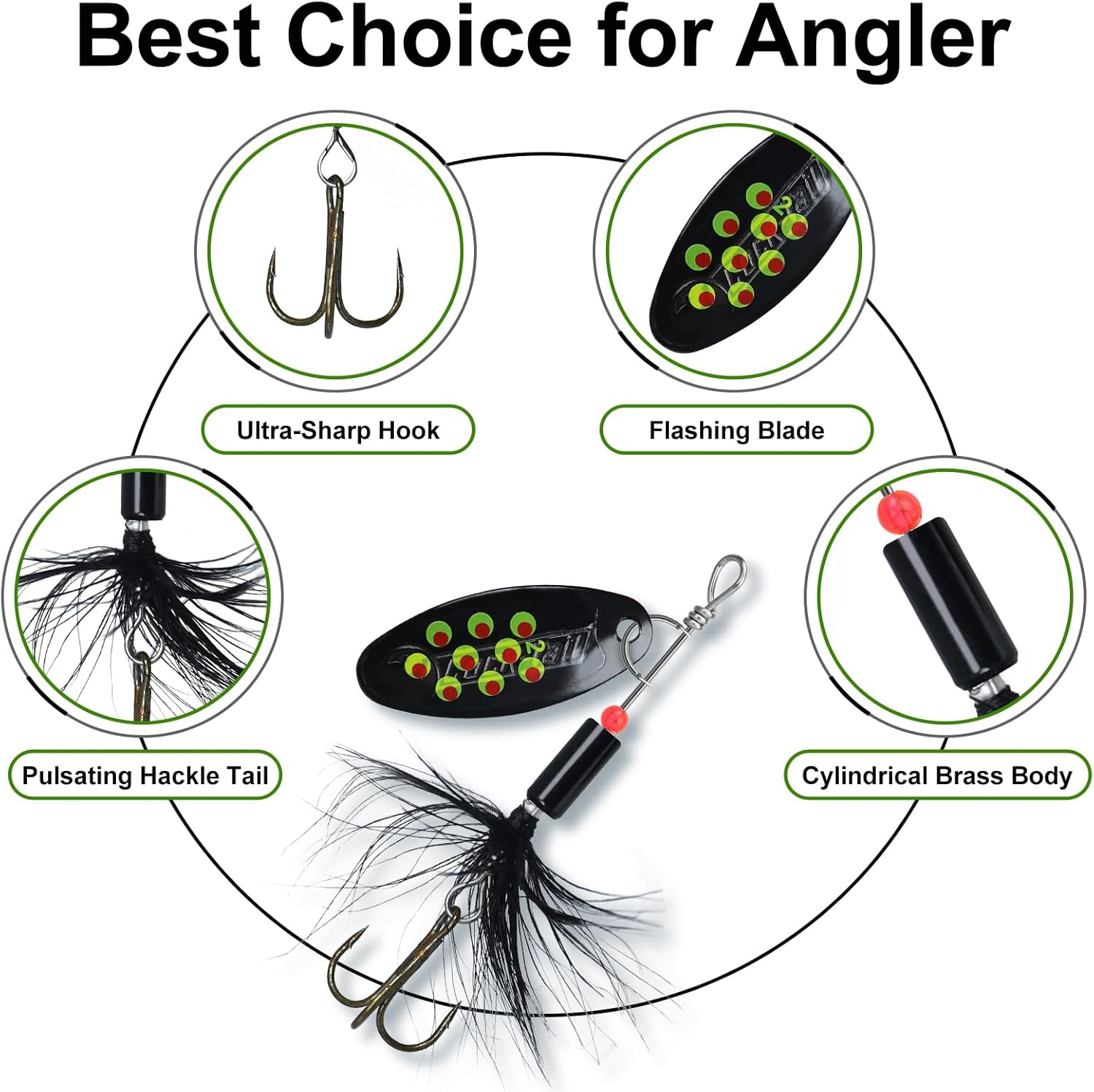 EXCELLENT COMPONENTS - The effective trout lures combine the pulsating rooster tail, an ultra-sharp treble hook and a premium brass body to ensure excellent and long-lasting performance and enticement when retrieved slow or fast. The rugged solid brass blades will produce a thump you can feel