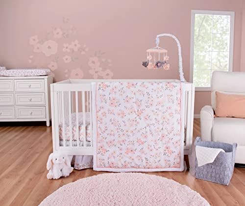 Trend Lab Blush Floral 3 Piece Crib Bedding Set, Includes Nursery Quilt, Fitted Crib Sheet and Crib Skirt