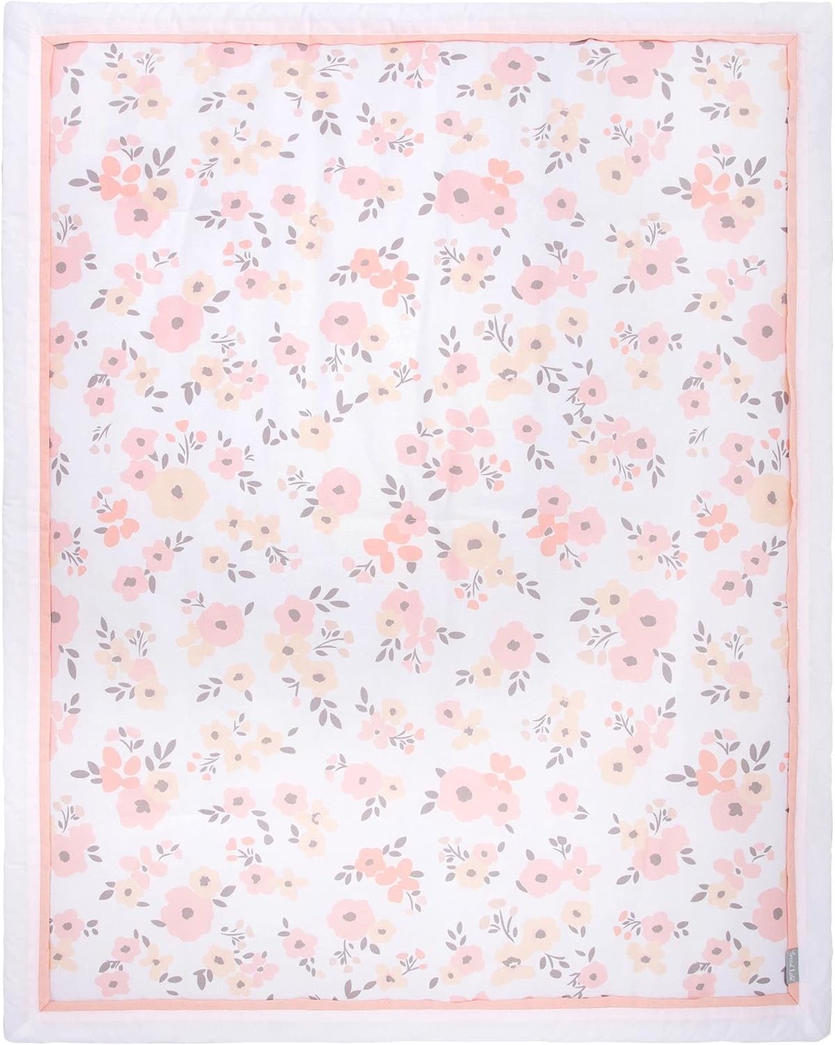 Make your nursery bloom with the Blush Floral 3 Piece Bedding Set by Trend Lab. This blossoming bedding collection is the perfect addition to any little girl’s nursery. With a sweet blush pink color palette and a soft flower pattern, this collection will add the right amount of femininity and sweetness. Set includes: Nursery Quilt, Fitted Crib Sheet, Crib Skirt. Reversible 100% Cotton Nursery Quilt measures 35 in x 45 in and features blush pink floral print. The nursery quilt is a great 2-in-1 option and can be used as a blanket or a playmat for tummy time. 100% Cotton Fitted Crib Sheet fits standard crib mattress 28 in x 52 in with 8 inch deep pockets and is fully elasticized for a secure fit. Crib sheet features pink blush floral print 100% Cotton ruffled Crib skirt (exclusive of skirt deck) fits standard crib mattress 28 in x 52 in with 13 inch drop, is white, and features coordinating blush floral border. Coordinating Blush Floral crib bedding and accessories by Trend Lab are available sold separately. Please adhere to JPMA’s Safe Infant Bedding Practices.