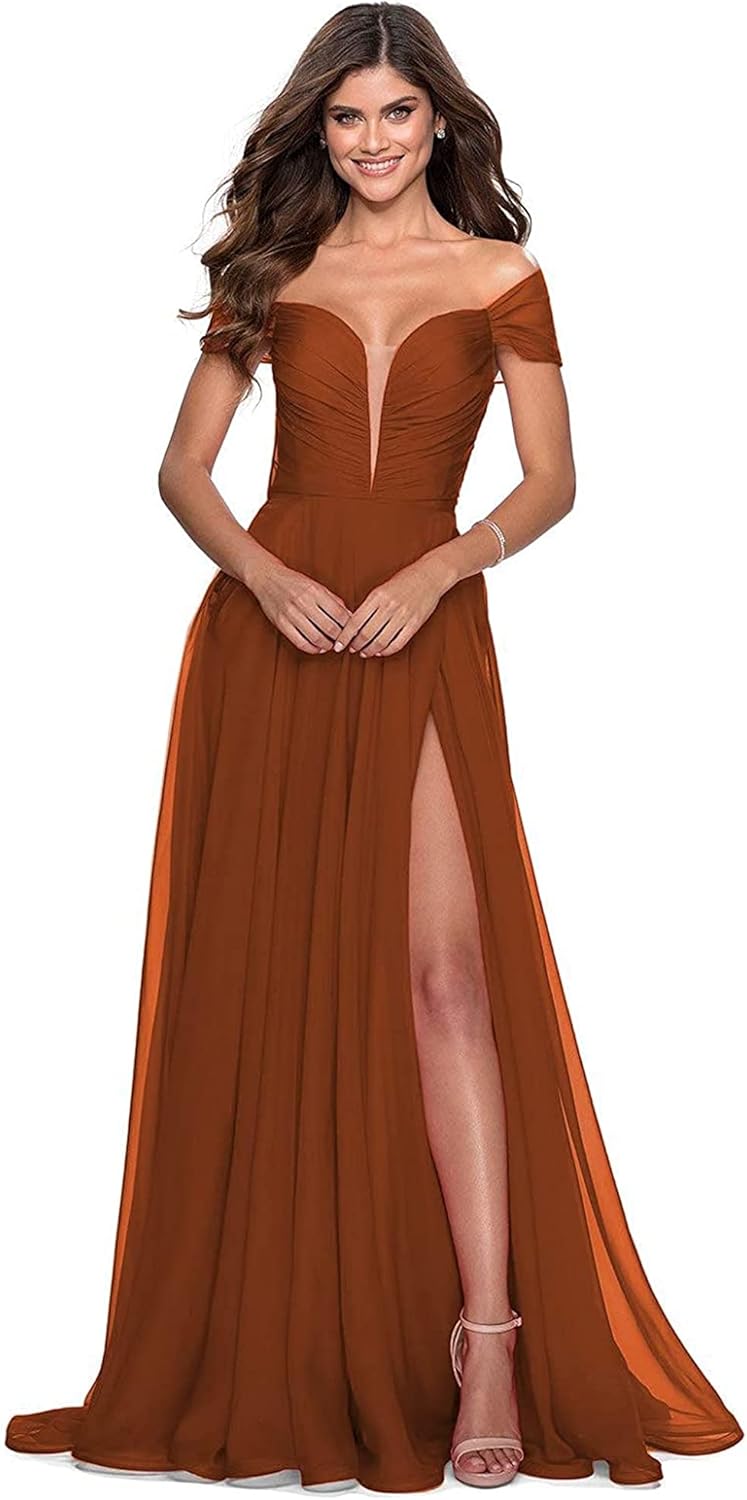 Chiffon Bridesmaid Dresses 2025 Off Shoulder High Slit Pleated A-line Long Ball Gowns for Women Formal