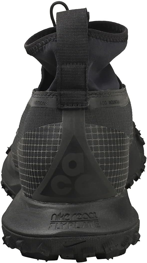 Gore-Tex upper ACG Mountain Fly silhouette with rubber overlays, flexible ankle cuff featuring toggle, reflective accents, tongue and heel tabs, protective sole cap with Swoosh, side panel Swoosh, Goretex and ACG branding, Nike React midsole, rubber outsole. Style: NKCT2904-002, Color: Black / Dark Grey, Material: Gore-Tex