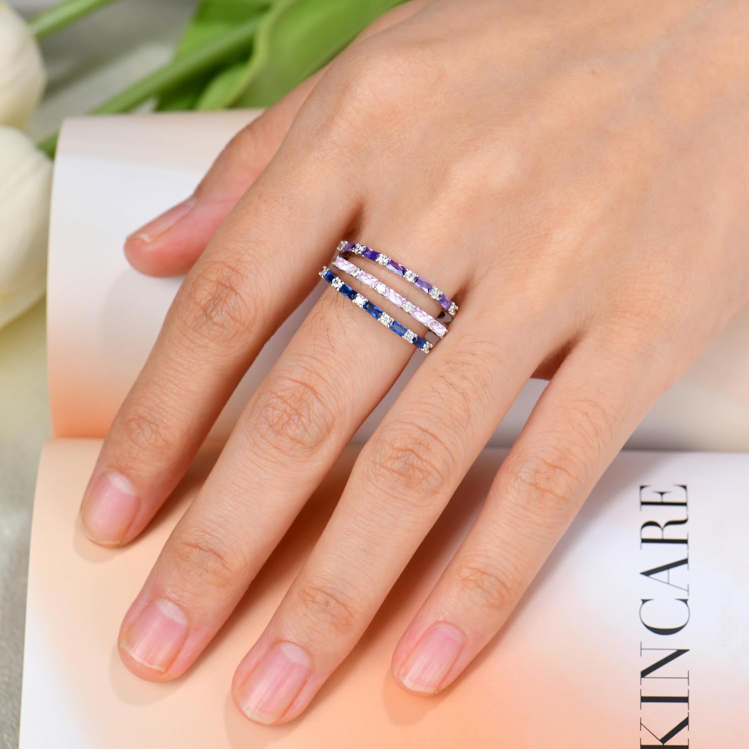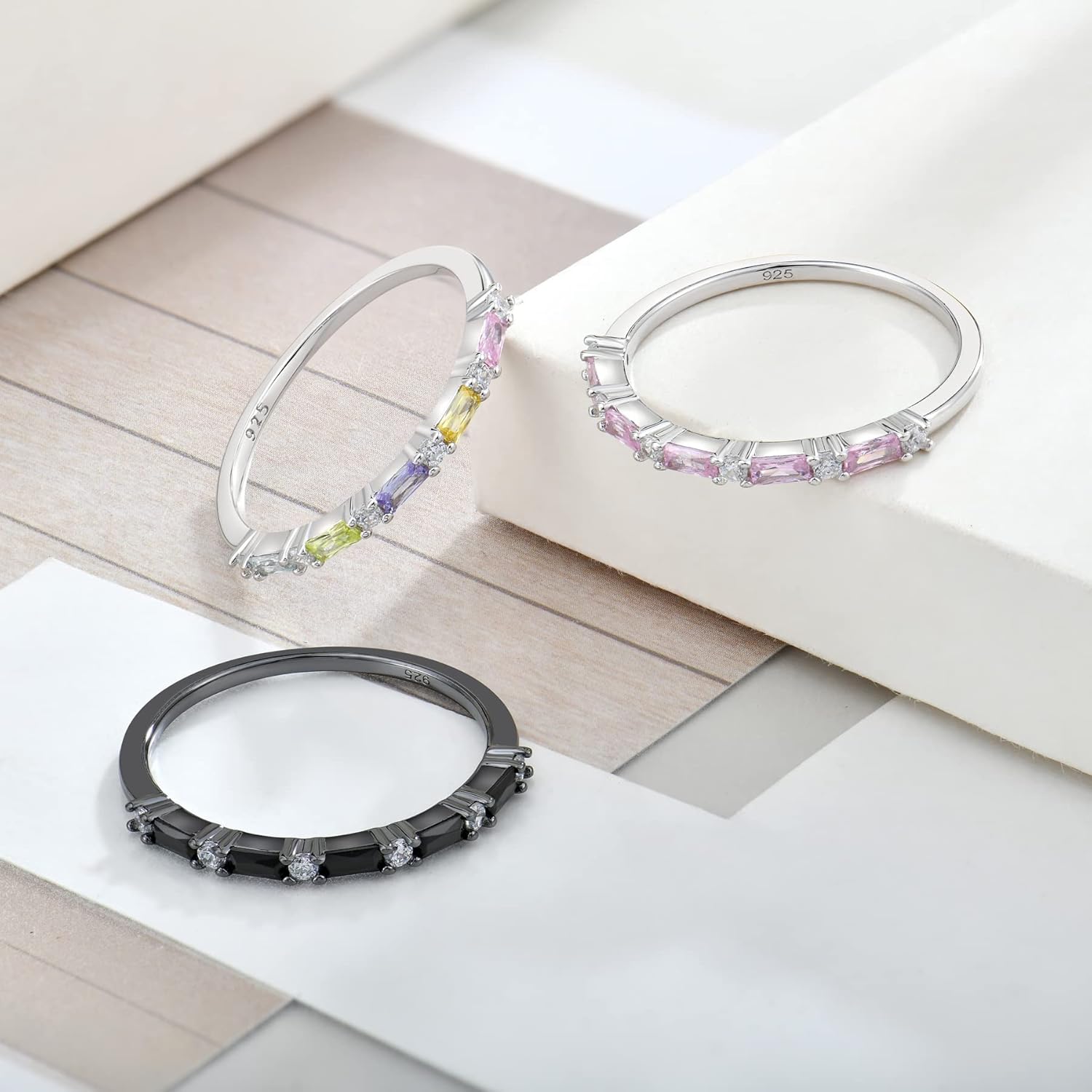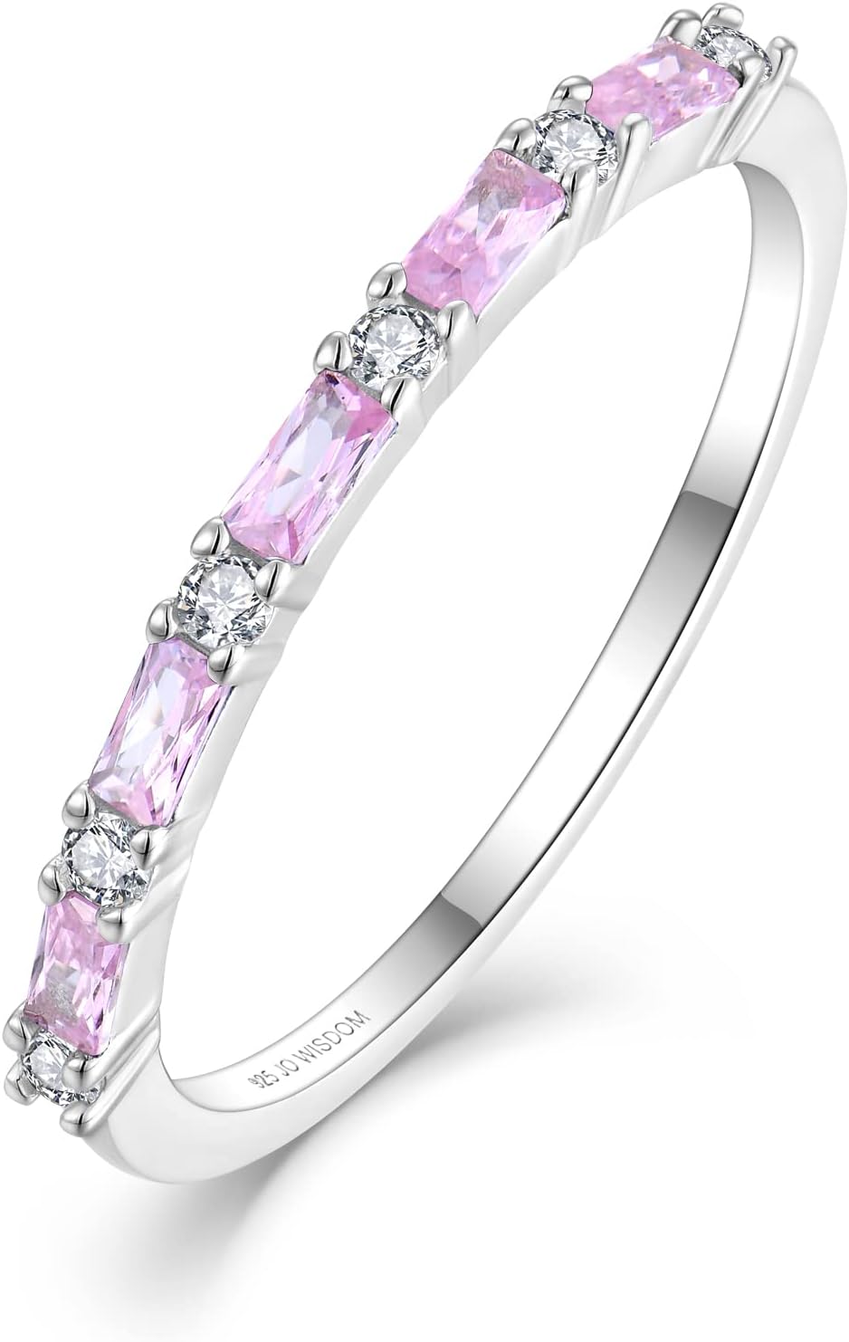 JO WISDOM 925 Sterling Silver Wedding Band for Women Thin Stacking Ring Half Cubic Zirconia Eternity Engagement Ring