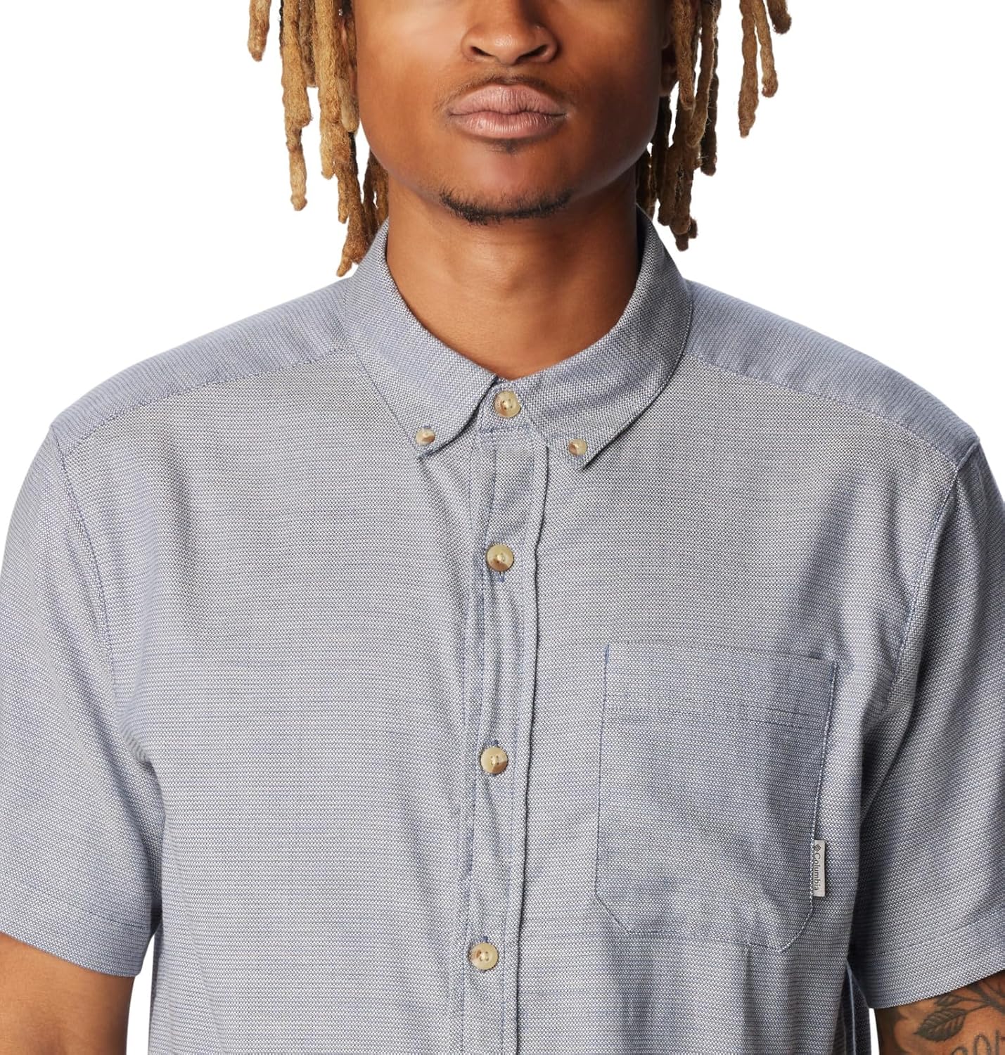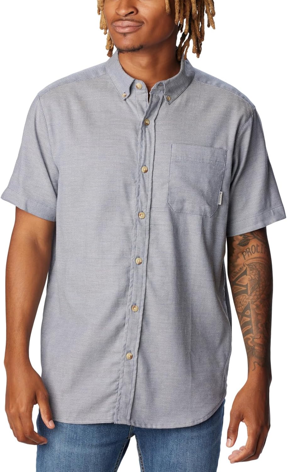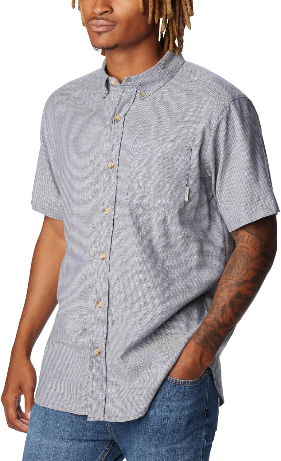 Camisa de manga corta con botón crisp, ya sea que estés en el agua o en el gastropub, esta manga corta tiene un estilo limpio y suave que te encantará. Confeccionada con una mezcla de algodón, esta camisa de botón relajada es el pilar de la comodidad durante todo el día y el estilo al aire libre. La Columbia Men's Rapid Rivers II Short Sleeve Shirt ofrece total comodidad en el bosque, en la acera o en el borde del mar. Esta camisa de manga corta casual y con estilo está hecha de una mezcla de algodón con un toque de elasticidad, diseñada para un estiramiento y rendimiento cómodos en dos direcciones. Un solo bolsillo en el pecho, cuello abotonado, con clase abotonada. Columbia ofrece esta camisa de manga corta para hombres en múltiples patrones y tallas. Corte regular. Disponible en tallas amplias. Para asegurarte de que la talla que elijas es la correcta, utiliza nuestra tabla de tallas y las siguientes instrucciones de medición: Para el pecho, mide en la parte más ancha del pecho, debajo de las axilas y sobre los omóplatos, manteniendo la cinta métrica firme y nivelada.