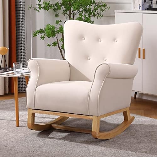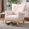 Nursery Rocking Chair, Mid Century Uplostered Glider Rocker Armchair with High Backrest, Rocking Accent Chair Single Sofa Accent Glider Rocker for Living Room Bedroom Offices (Round, Beige)