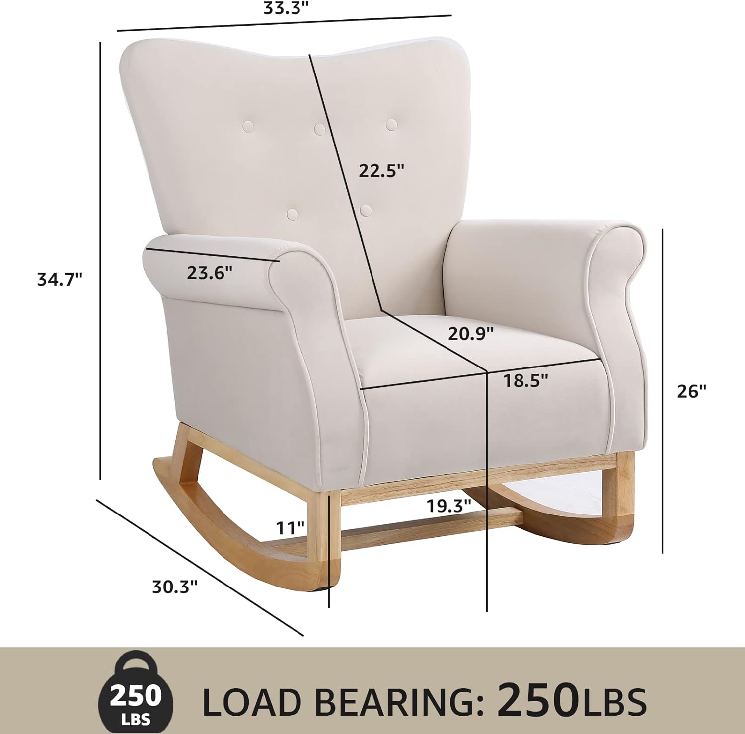 ERGONOMIC DESIGN - This rocking chair has a built-in high-density sponge, which is more elastic, wrapping, and not easily deformed. The design of high backrest perfectly lines up with the human body line and well-placed armrests provide you with great comfort and help you relax after tiring work when you lean on it or rock it.