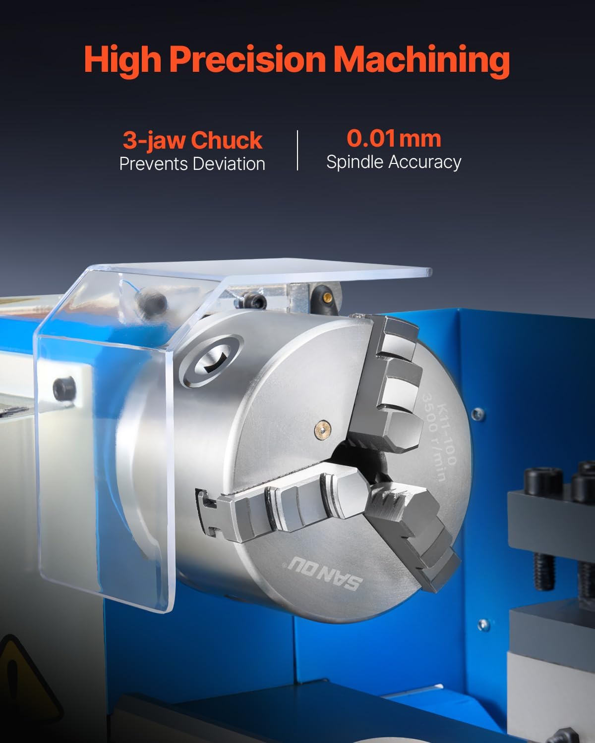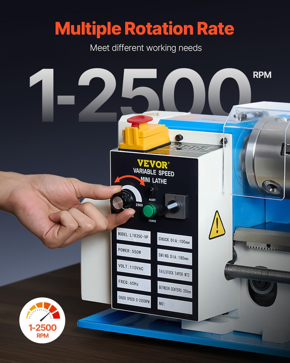 550W Powerful Motor:The benchtop mini metal lathe is equipped with a 550W powerful motor, is excellent for handling small to medium projects.