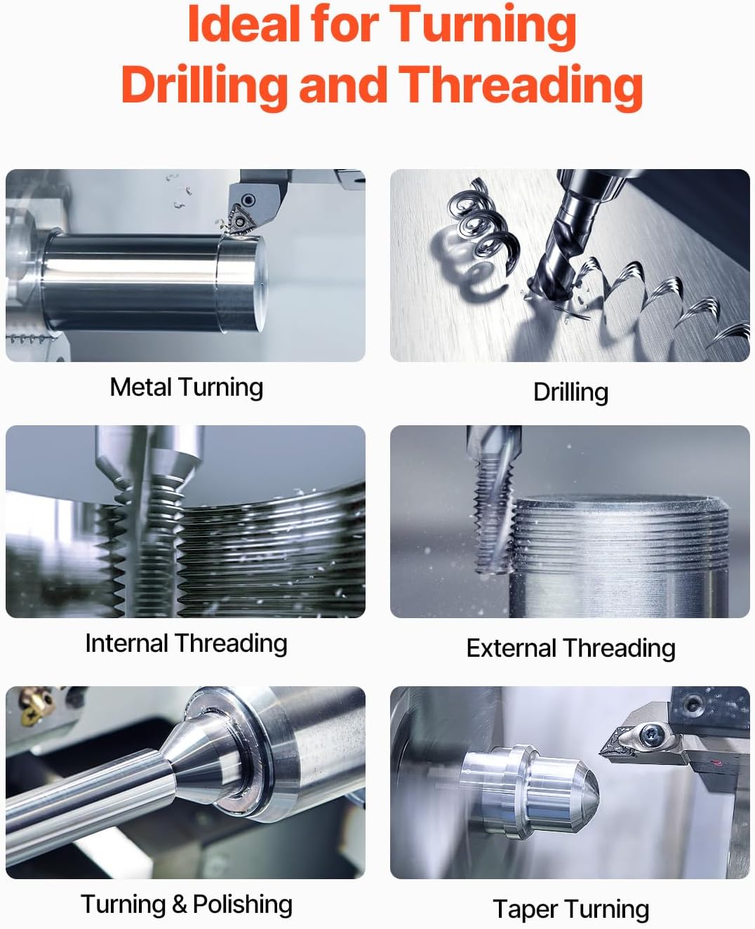 Upgrqade Version: Upgraded metal gear and hand wheel can prolong the service time. LED light helps you work on the dim surroundings. It’s designed for turning, drilling, and threading.