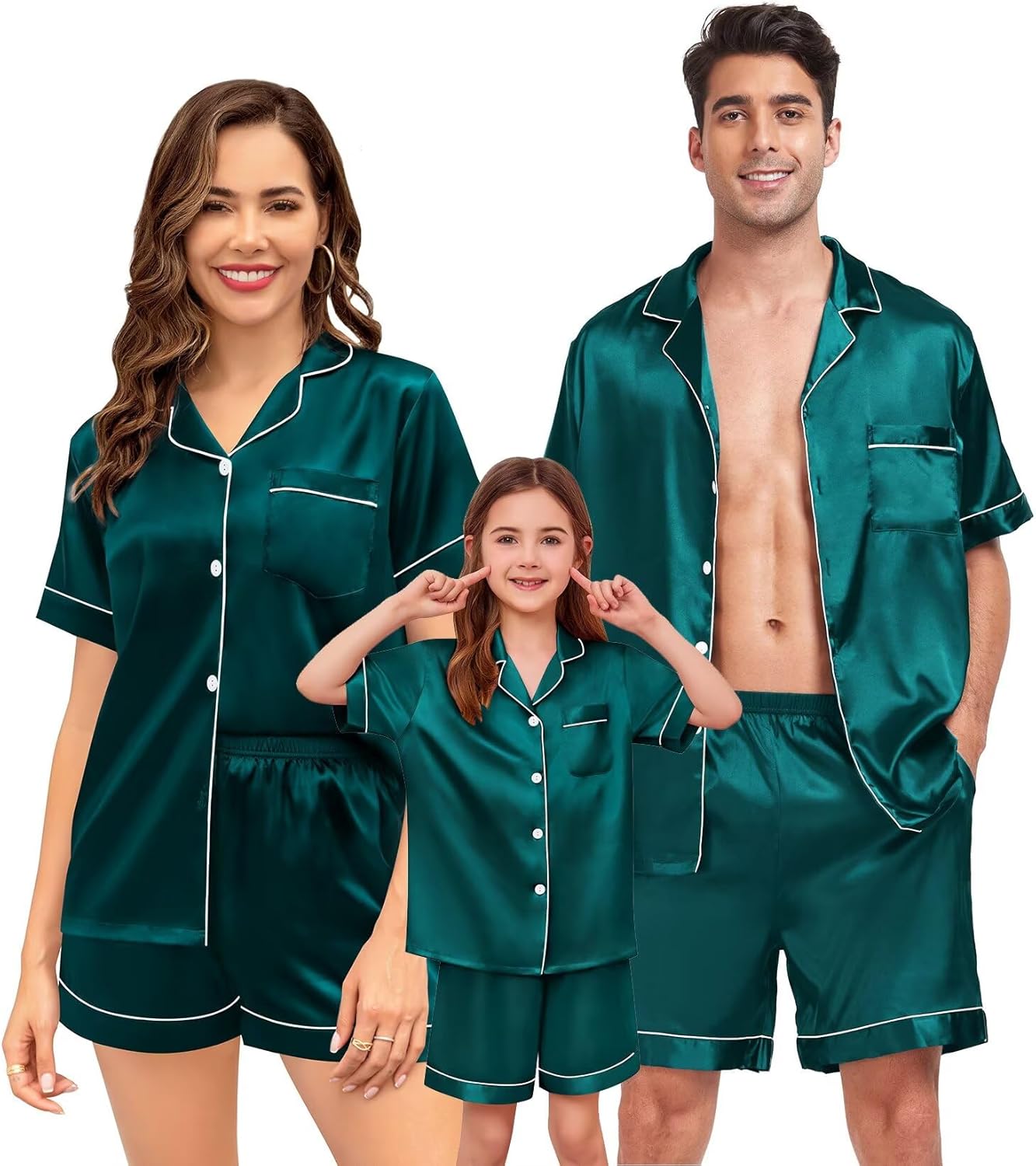 SWOMOG Couple Matching Pajamas Sets Women & Men Button Down Silk Pjs Men Short Sleeve Soft Lounge Sets 2 Pcs Loungewear