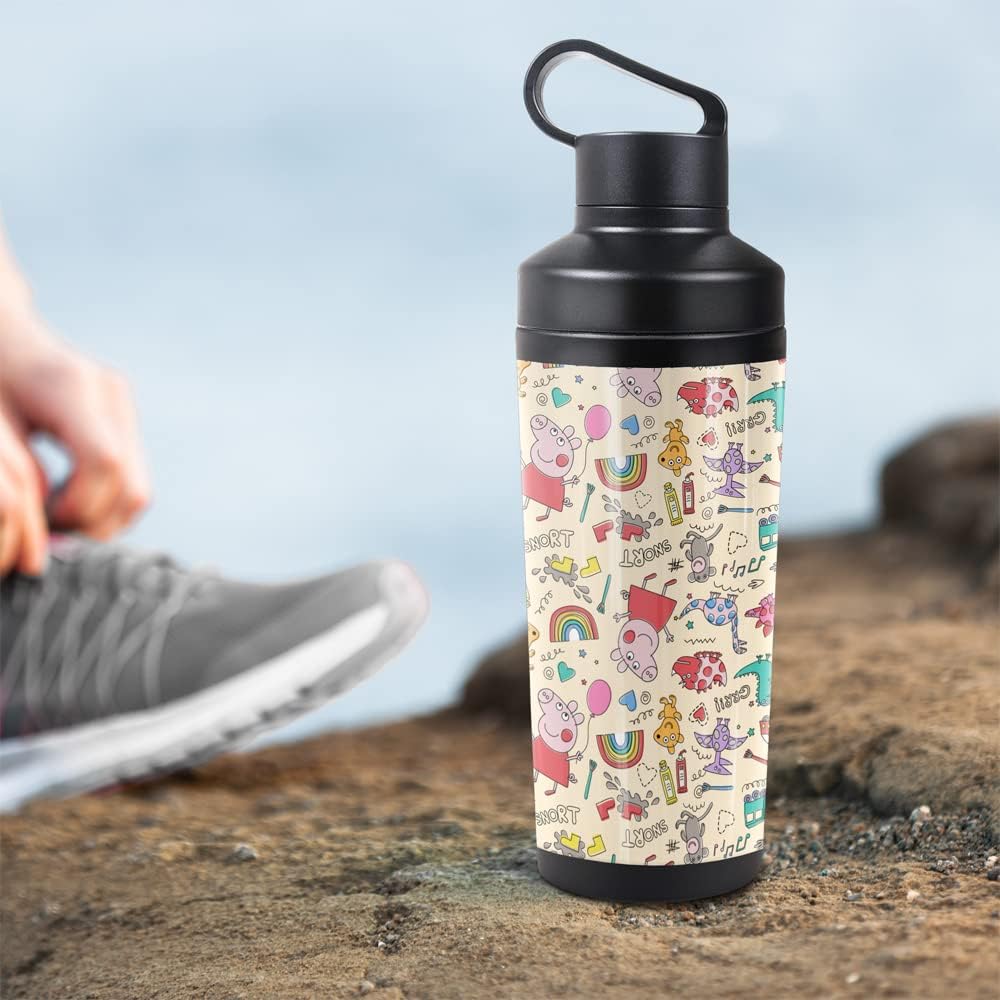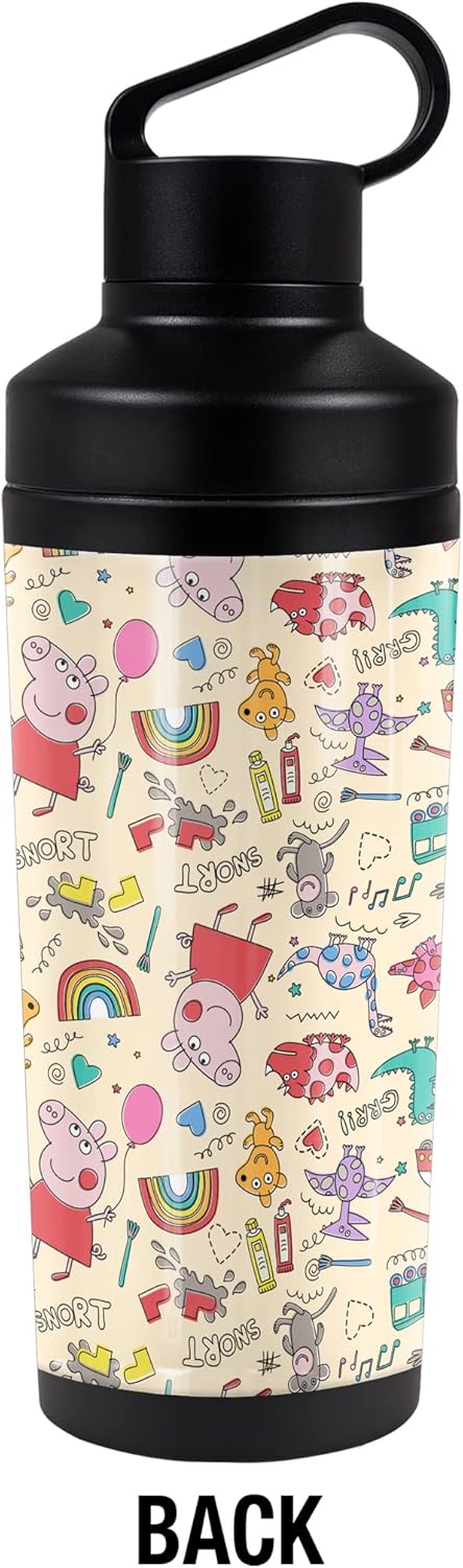 Peppa Pig OFFICIAL Peppa And Friends Pencil Pattern 18 oz Insulated Water Bottle, Leak Resistant, Vacuum Insulated Stainless Steel with 2-in-1 Loop Cap