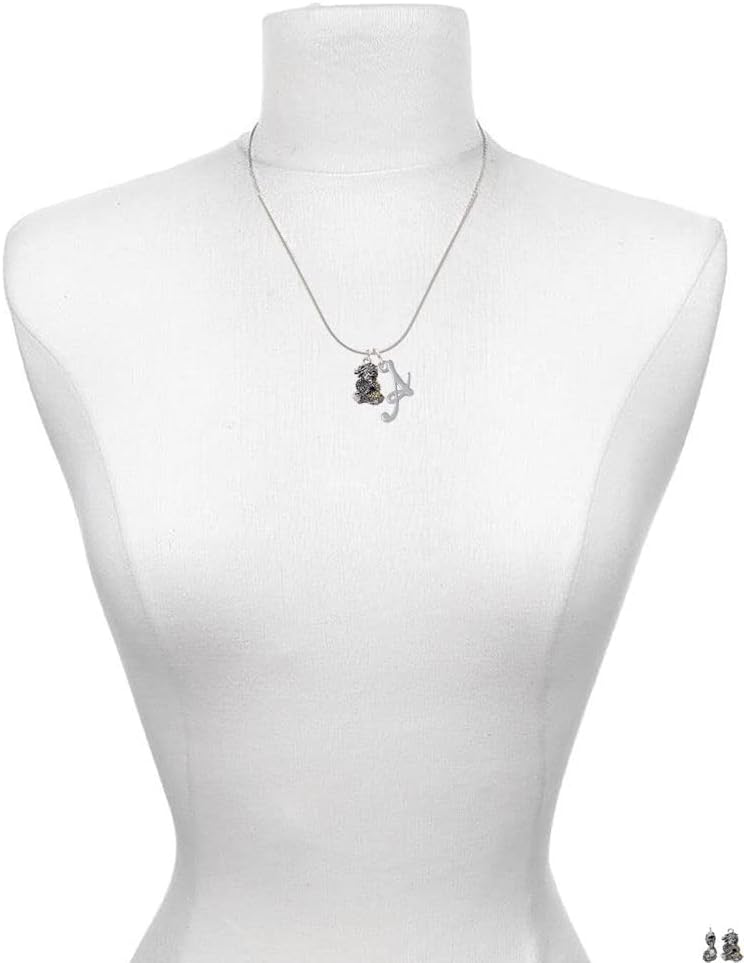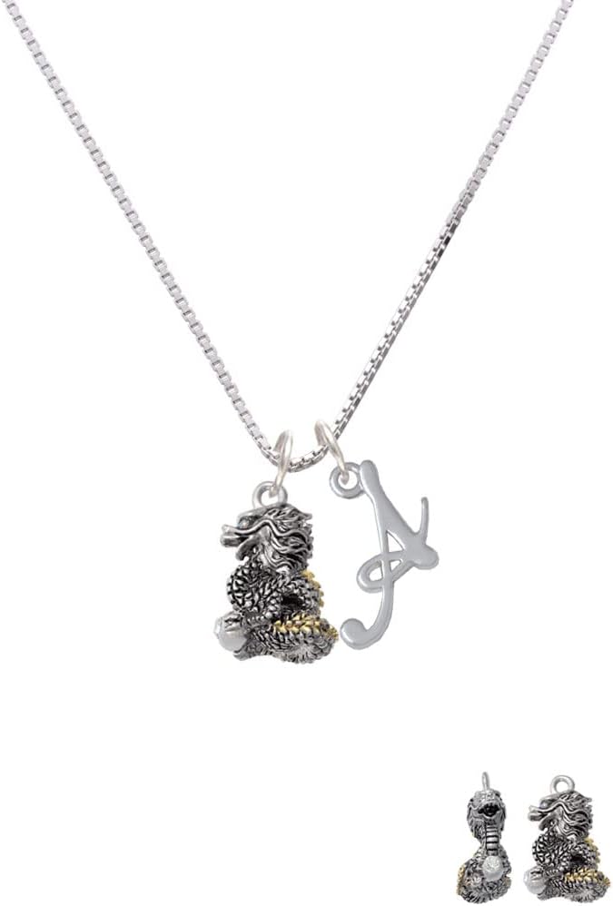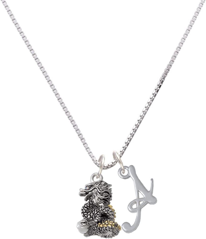 Delight Jewelry Dragon with Crystal Eyes & Clear Ball - Silvertone Script Initial Charm Necklace, 18"+1"
