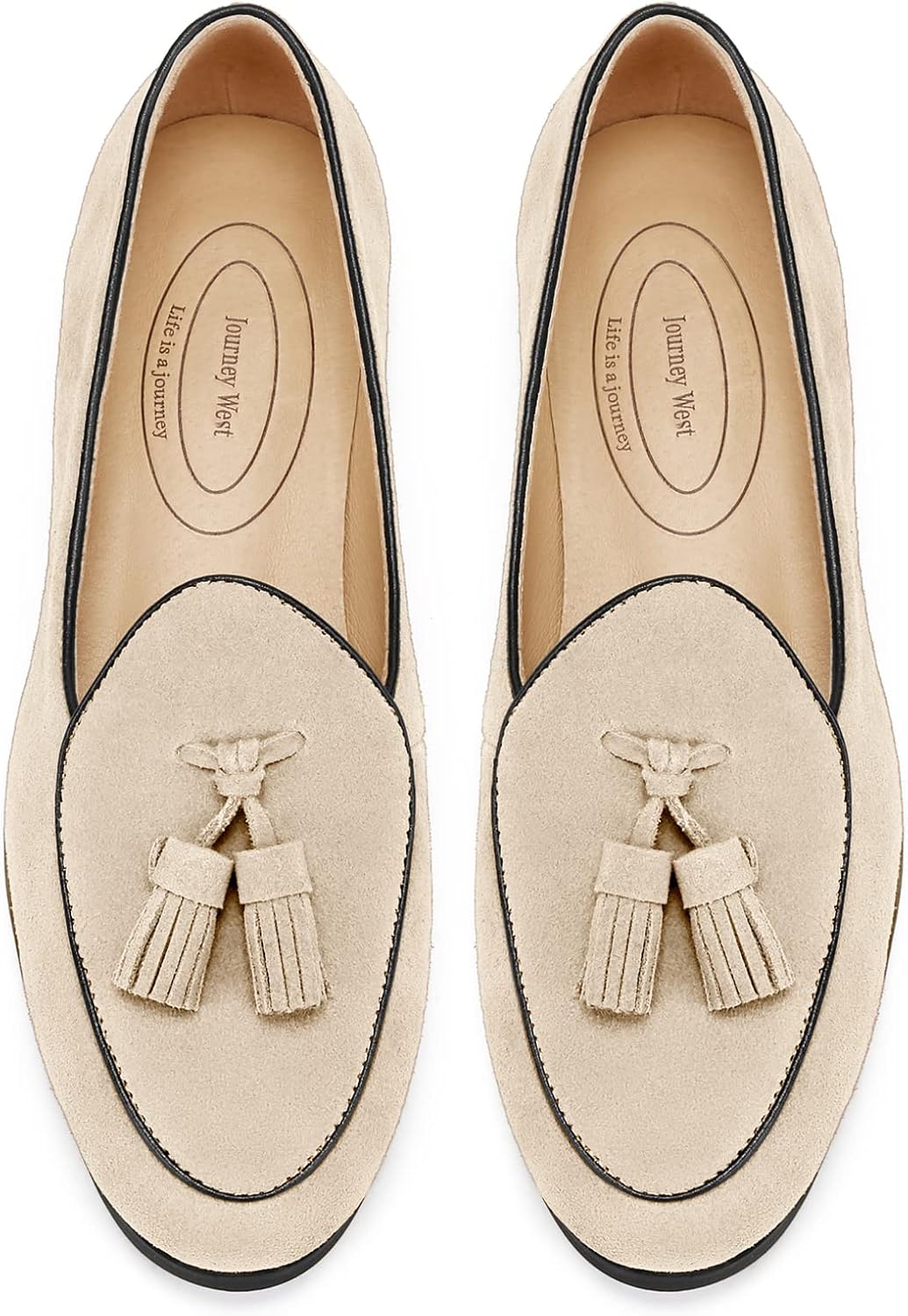 Journey West Suede Tassel Loafer for Women Slip-on Belgian Penny Loafers Shoes for Women in Many Colors