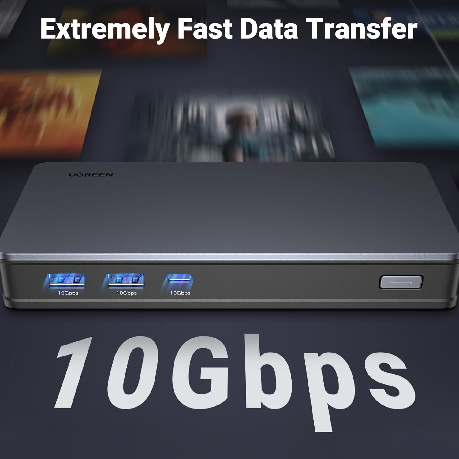 Lightning-Fast Data Transfer: Experience lightning-fast data transfer speeds with 2x USB-A 3.2 Gen 2 and 1x USB-C 3.2 Gen 2 ports, offering up to 10Gbps. Transfer files, videos, and more in seconds, making daily expansion and data transfer a breeze.
