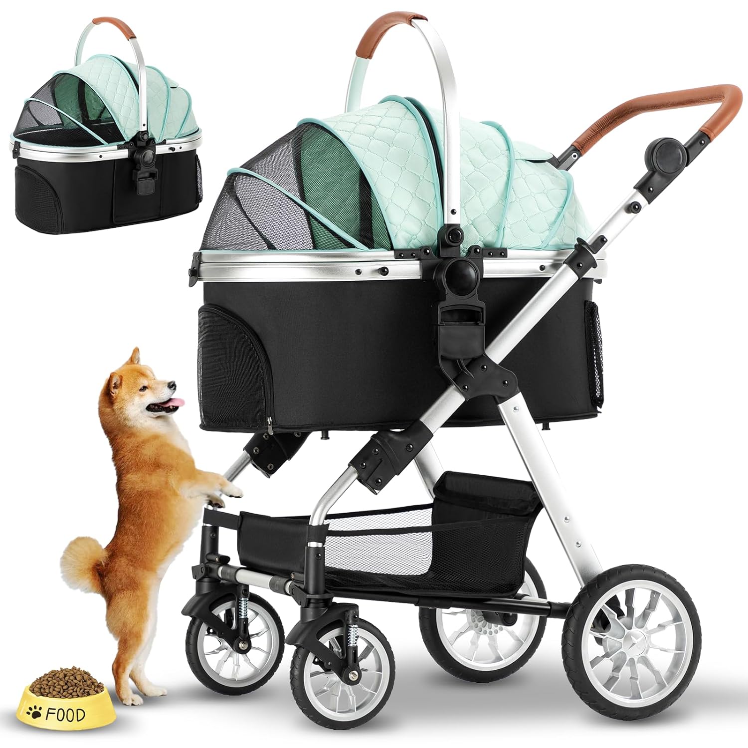 Pet Stroller for Medium/Small Dogs - Foldable, Lightweight Dog Carrier with Storage Basket (Green)