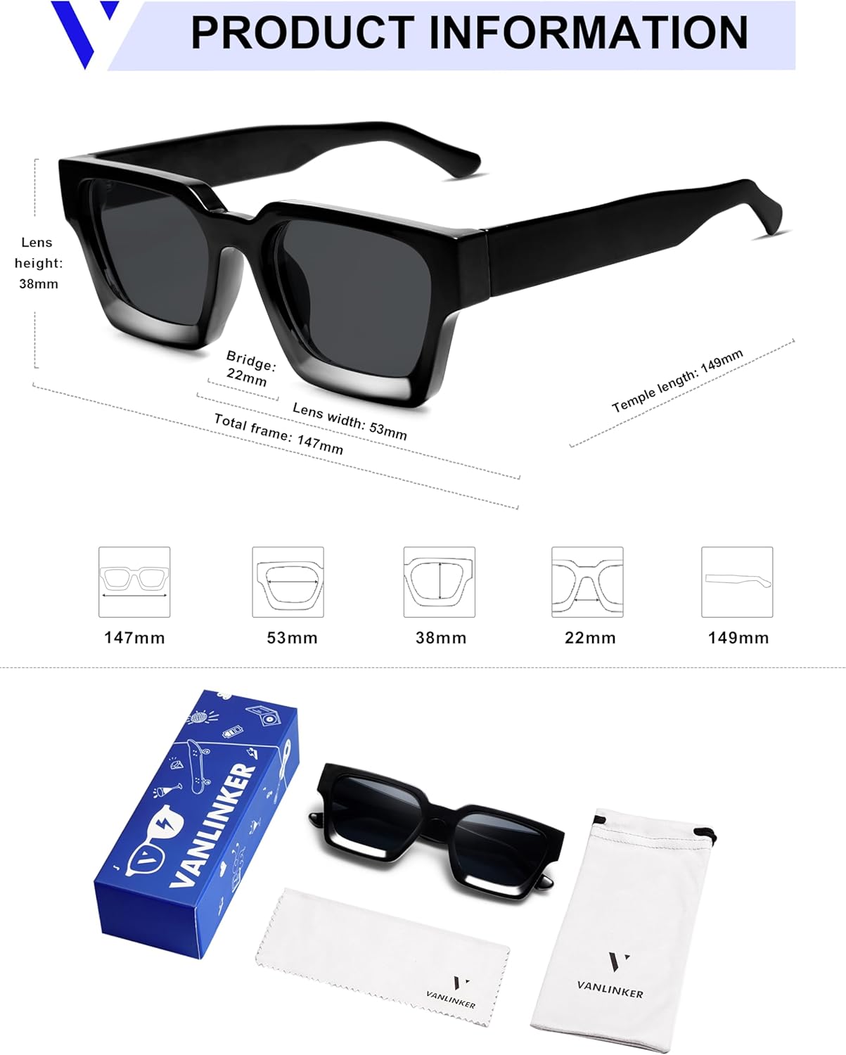 VANLINKER Thick Square Sunglasses for Men Women Retro Chunky Rectangle Shades UV400 Protection VL9731