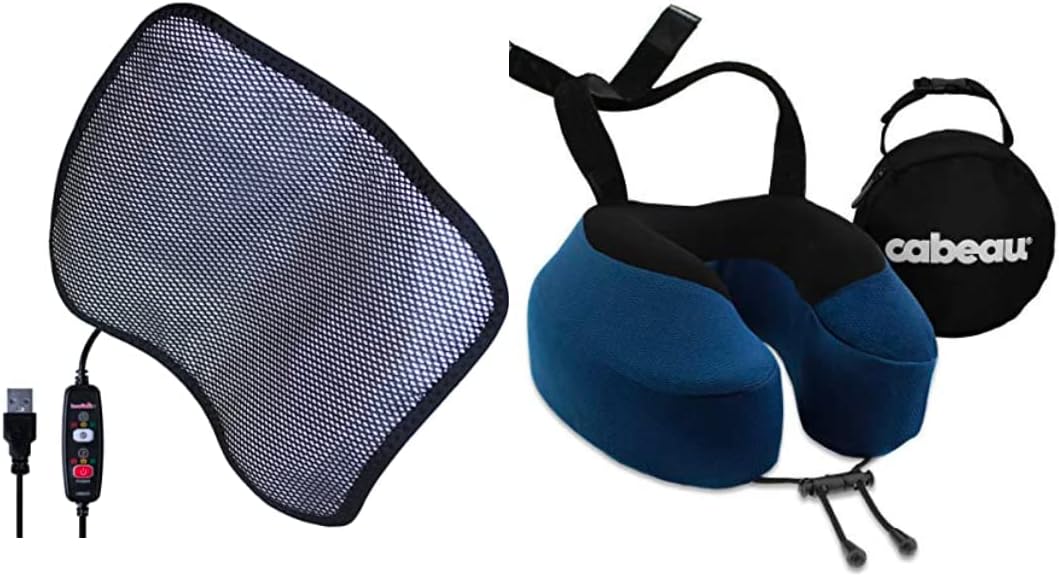 THE BEST TRAVEL PILLOW OF 2022 & Portable USB-powered heating pad provides convenient warmth on-the-go and compressed-heat therapy to ease muscle strain and relieve pain with our two-strap system.- As featured in CNN. U.S. Based company + U.S. designs. Our memory foam travel pillow is the ideal car pillow for road trips or the perfect airplane neck pillow to catch some sleep on a long flight. Top off your travel kit with this premium support pillow to help avoid neck pain.