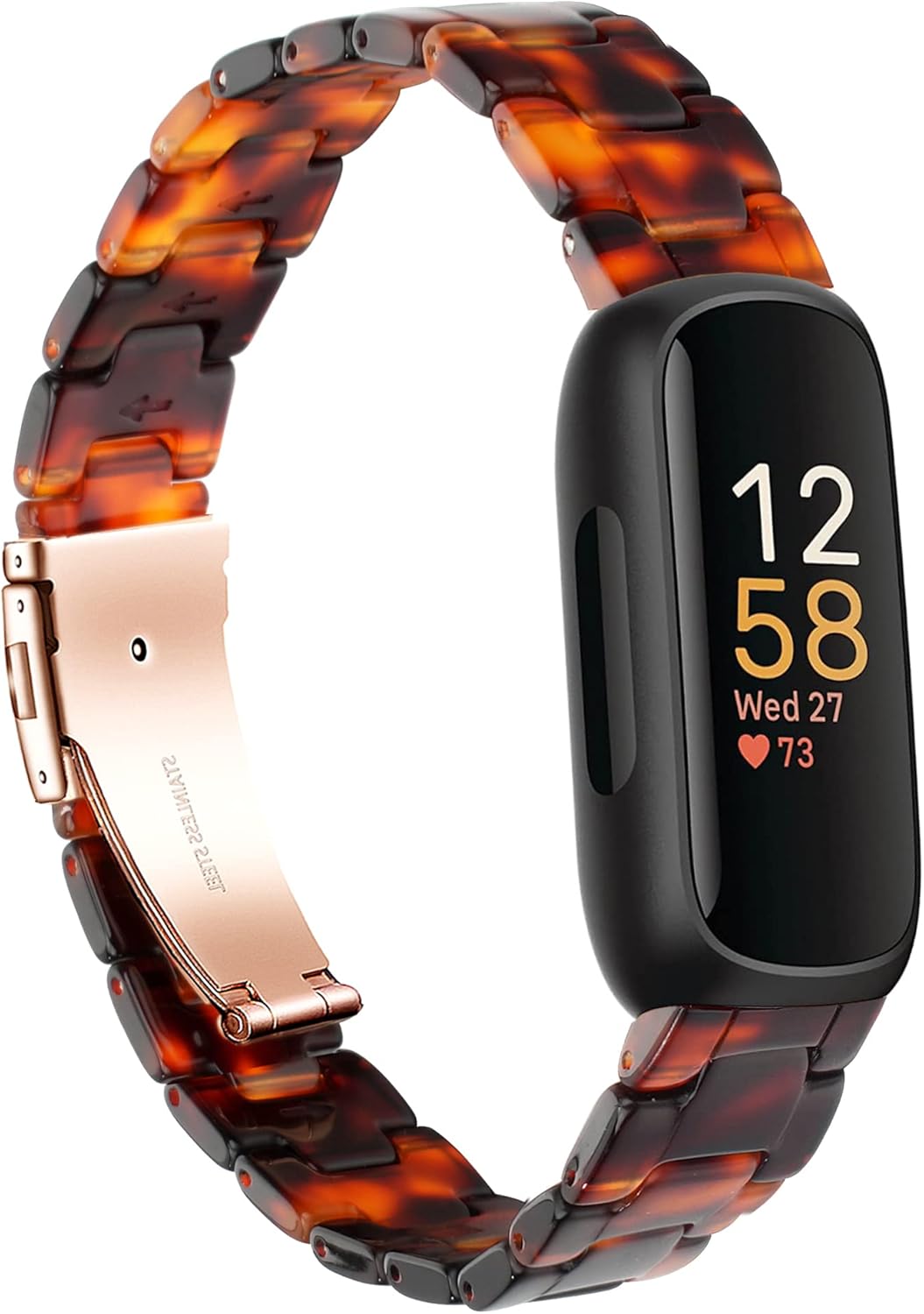 Wongeto Compatible with Fitbit Inspire 3 Band Women,Tortoise Resin Watch Band Slim Replacement Adjustable Wristband for Fitbit Inspire 3 accssorises