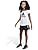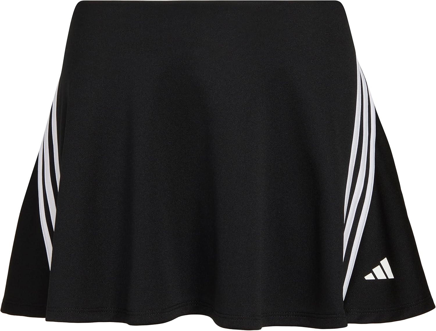 La falda deportiva presenta una costura diagonal en el dobladillo con rayas aplicadas y un volante en el dobladillo inferior. Una marca de Adidas en transferencia térmica colocada en el dobladillo izquierdo frontal