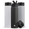 JoyJolt Triple Insulated Water Bottle with Straw Lid AND Flip Lid! 22oz Water Bottle, 12 Hour Hot/Cold Vacuum Insulated Stainless Steel Water Bottle. BPA-Free Leakproof Water Bottles - Thermos Bottle
