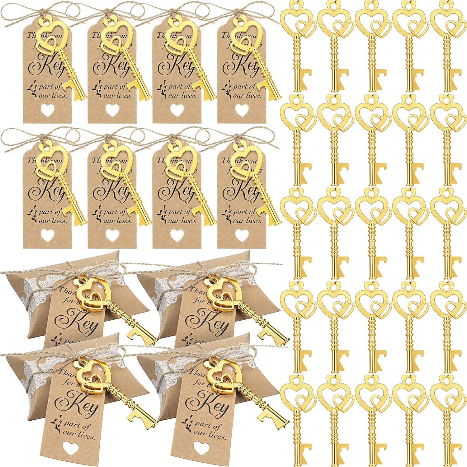 Wedding Favors for Guests Bulk: the package includes 100 pcs double heart key bottle openers, 100 pcs treat boxes and 100 pcs escort tags card with a 20 meters jute rope; The sufficient quantity and the nice combination can meet your daily use or party gifting needs; You can also share them with your friends and family